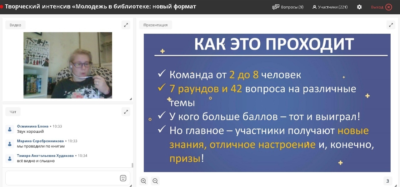 В течение четырех дней, с 15 по 18 июня, шли доклады, лекции, мастер-классы, посвященные развитию актуальных форматов работы с юными читателями, созданию и развитию волонтерских, театральных, творческих объединений для юношества на базе библиотек. Программу вели более двадцати спикеров из Вологды, Москвы, Санкт-Петербурга, Салехарда, Вологды, Пензы, Каменска-Уральского и других городов.