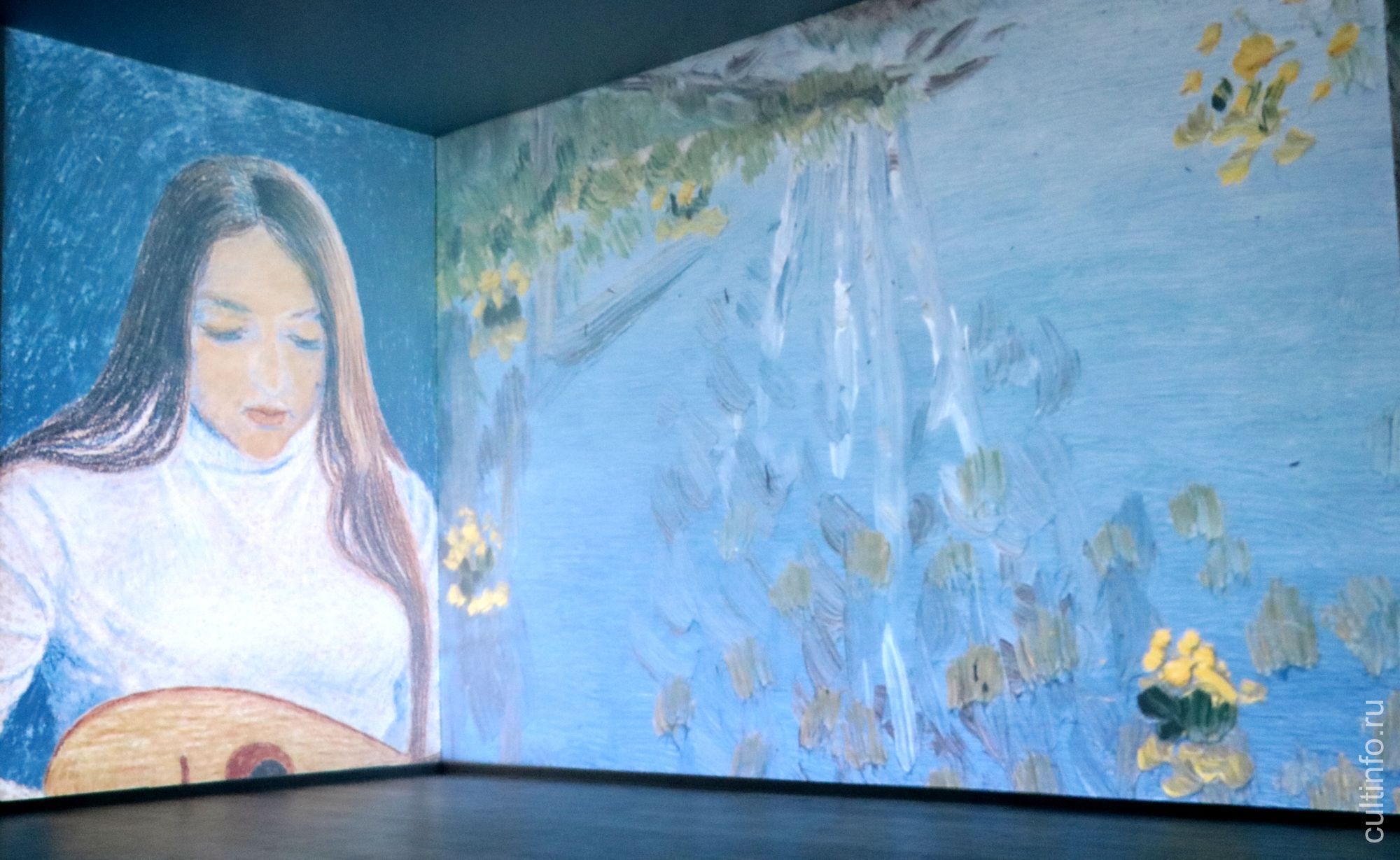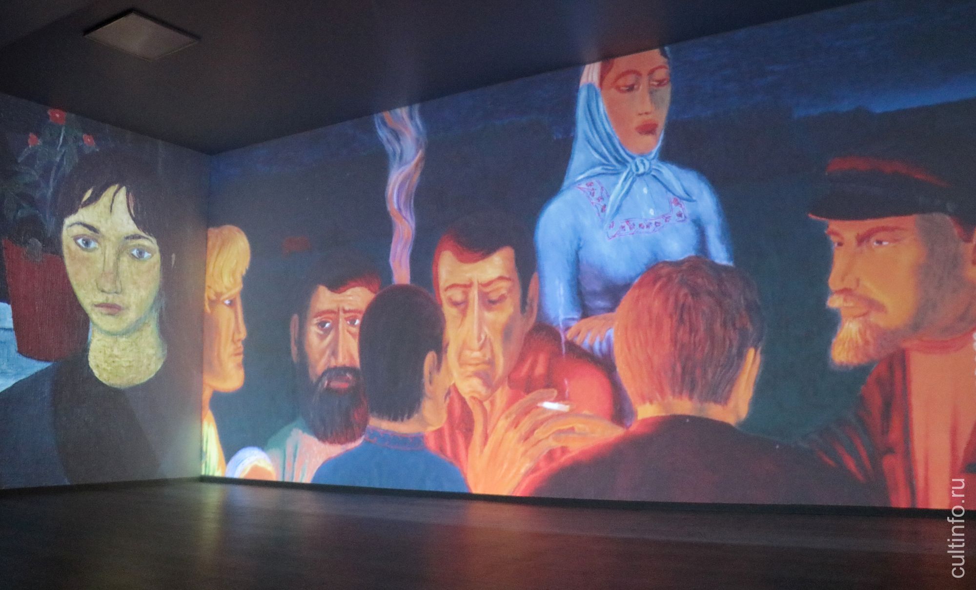 У мультимедийного формата есть и другие преимущества – о них говорит руководитель арт-пространства FABRICA Любовь Полётова: «Георгий Попов писал свои картины не с уровня глаз, а как бы глядя паря высоко надо всем, что он видит, и зритель получает возможность тоже взглянуть на северную деревню с высоты. Крупные полотна можно рассмотреть в деталях, оценив особую технику письма – мелкими точечными мазками. Можно увидеть картины, которые находятся в других городах – в Тотьме, в Екатеринбурге, в частных собраниях. Музыку для первой части выставки написал вологодский композитор Анатолий Дзюба, а во второй звучат гармонь, народные песни и песни на стихи Николая Рубцова – эти мелодии созвучны картинам Попова».