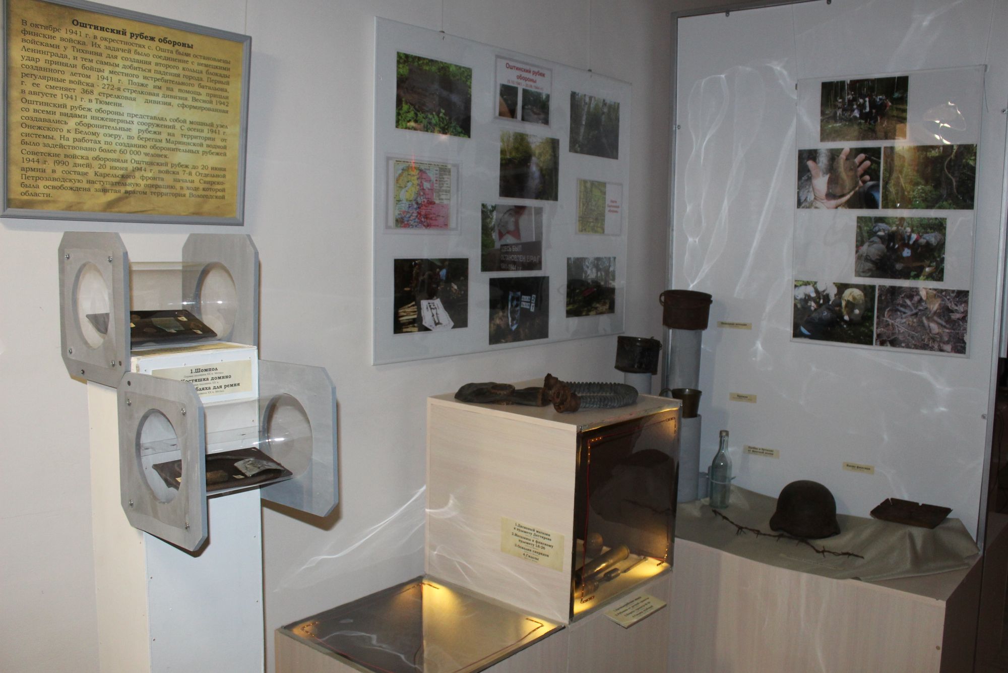 Основу экспозиции составили предметы и документы из фондов Белозерского областного краеведческого музея и частных коллекций, а также материалы экспедиций поисковых отрядов Вологодской области и музея Новокемской общеобразовательной школы.