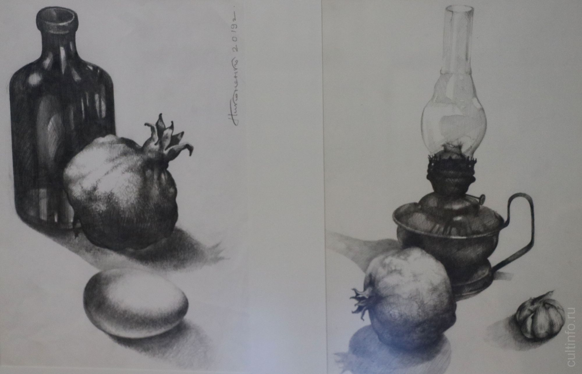 Сейчас он работает над концептуальным триптихом, который будет выполнен в цвете масляными красками. В него войдет композиция с изображением высохших гранатов на синем фоне – это, по словам Виктора Никоненко, «неродившаяся красота». Копченая засушенная рыба, ставшая центральным образом другого полотна, отражает «мертвую красоту», а на третьей работе будет запечатлена «ржавая красота», а именно – кусок старой дрели, состоящий из огромного количества шестеренок и проржавевших деталей, который автор нашел в саду у своего друга-художника.