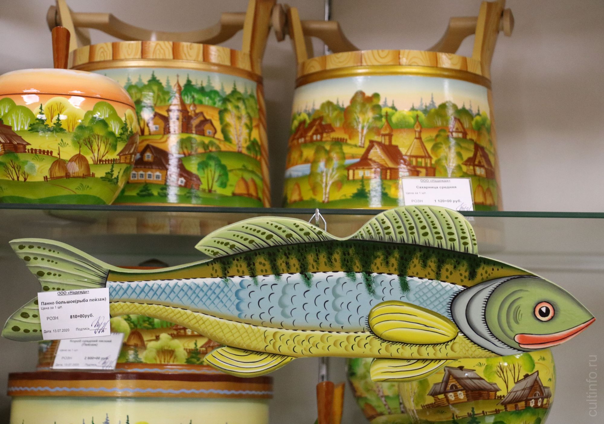 Помимо бочат, на витринах «Надежды» в магазине «Промыслы Вологодчины» разместятся нарядные деды морозы, елочки, матрешки, забавные тигры и фигурки других животных – всё это емкости для хранения и подарочные футляры для конфет или вина. Есть в ассортименте фабрики посуда и самые разнообразные сувениры, украшенные как традиционными вологодскими, так и авторскими росписями.