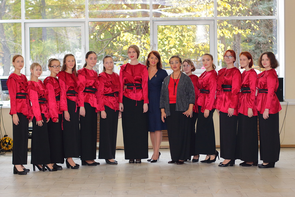Женский хор «Гармония» отделения хорового дирижирования под управлением заслуженного работника культуры Людмилы Шуваловой исполнил два фрагмента из цикла «Вечерок» Валерия Гаврилина.