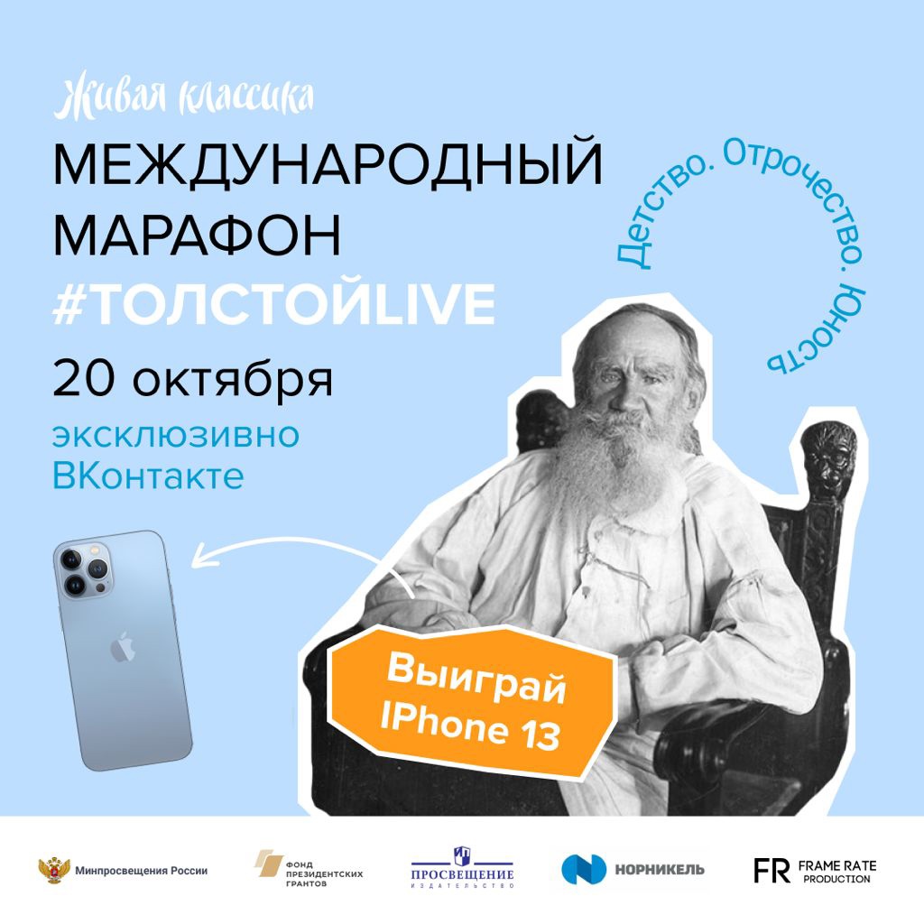 20 октября на платформах TikTok и ВКонтакте пройдет уникальный 11-часовой прямой эфир. Принять участие может каждый независимо от возраста и места проживания. Вместе с известными актерами театра, кино, певцами и звездами Инстаграма жители разных стран и городов прочтут отрывки из произведения Льва Толстого «Детство. Отрочество. Юность». Участники не только смогут громко заявить о своих талантах всему миру, но и выиграть Apple iPhone 13.