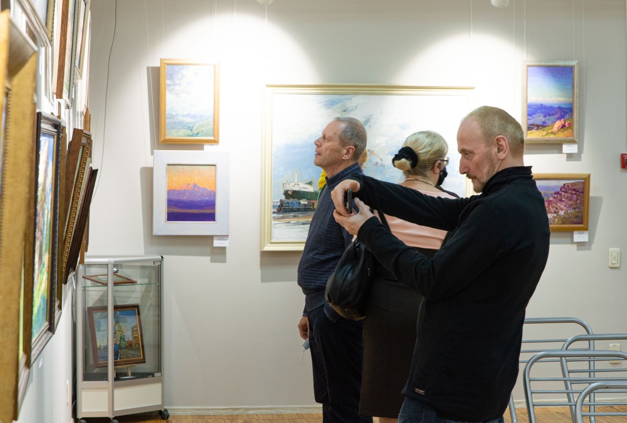 Григорий Черноголовков красочно изобразил Каргополь и село Черевково Архангельской области. Насыщенны и чарующи пейзажи Эльбруса Романа Зубкова, так напоминающие работы художника Василия Верещагина. Теплотой и мягкостью красок отличаются пейзажи реки Фонтанки Ирины Гуляйкиной. Сказочно выглядит «Дорога в парк» Елены Даниловой. В полной гармонии с живописью смотрятся гобелен Светланы Синяевой и керамика Евгении Арсеньевой.