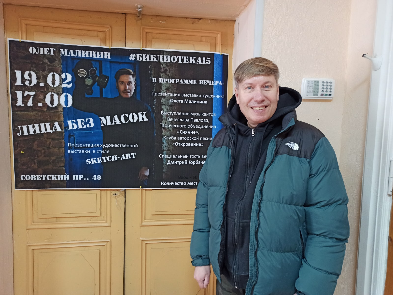 Выставка Олега Малинина «Лица без масок» откроется 19 февраля в 17.00. На открытии можно будет не только оценить художественное мастерство автора, но и насладиться музыкой. Для гостей выступят Клуб авторской песни «Откровение», Творческое объединение «Сияние», автор-исполнитель Вячеслав Павлов, а также специальный гость вечера – исполнитель и ведущий Дмитрий Горбачев.