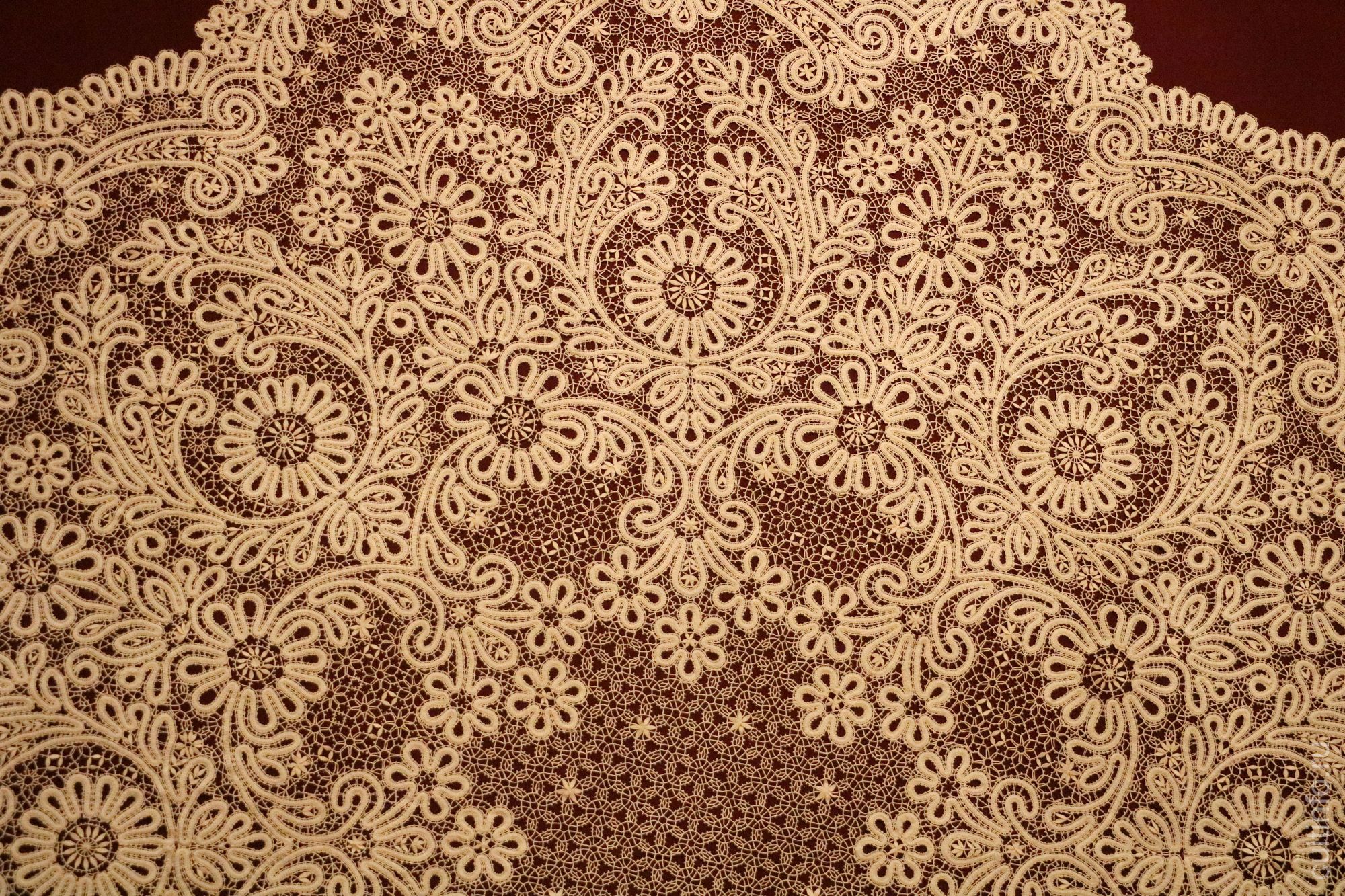 В вологодском Музее кружева открылась выставка одного экспоната – на ней представлена скатерть заслуженного художника РФ Галины Мамровской «Серебряный иней».