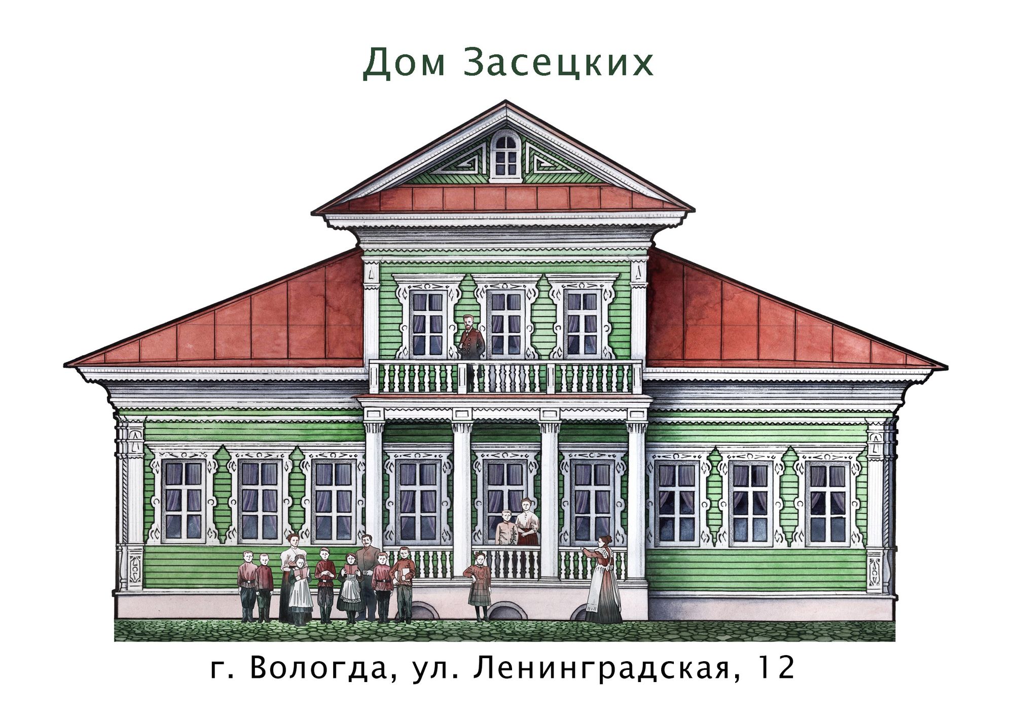 на Мальцева, 18. Их команда проекта делает по просьбе семьи Якимовых, отреставрировавших эти деревянные дома, в которых сейчас находятся цветочные магазины и проходят экскурсии для вологжан и гостей города.