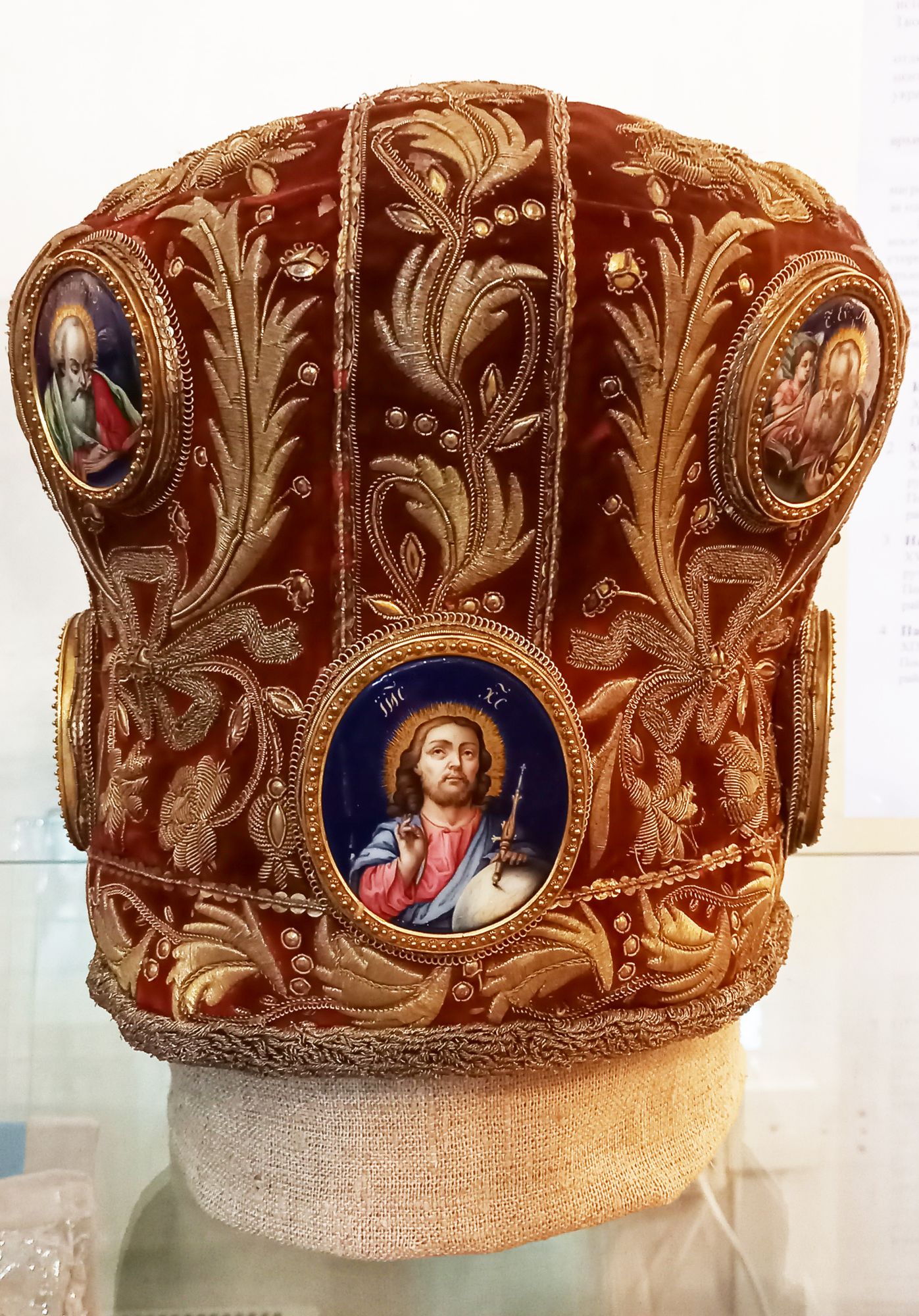 «Первая витрина знакомит с одеянием диакона, в ней показан стихарь, омофор и поручи – обязательные атрибуты диакона. В остальных витринах выставлены обязательные одеяния священника: фелонь, епитрахили и пояса, а также наградные предметы: скуфья, камилавка, набедренник и палица. Из одеяния архиепископа показан головной убор митра», – рассказали организаторы экспозиции.