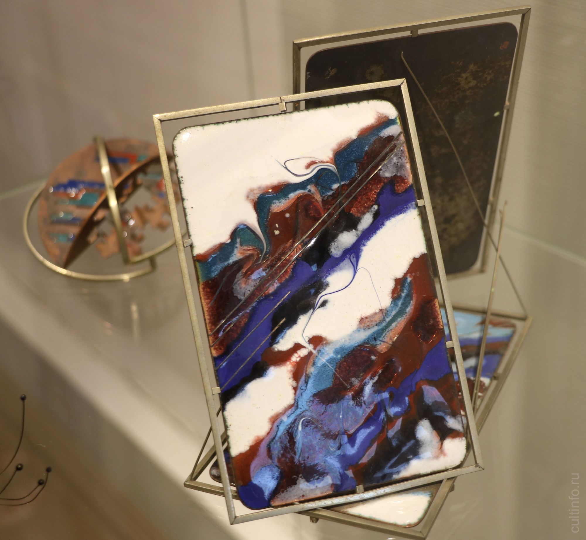 Абстрактные пейзажи из меди, эмали, а также кольца Семена Ганичева демонстрируют современный взгляд на ювелирное искусство.