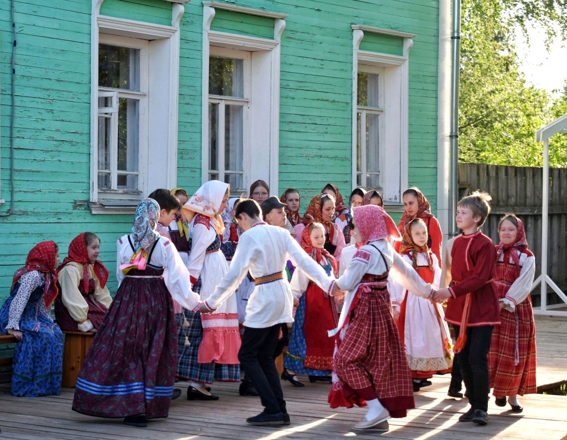 Сразу после открытия выставки «Нюксеница мастеровая» в живописном дворике «Резного палисада» состоялось выступление фольклорно-этнографического отделения детской музыкальной школы № 4 города Вологды.