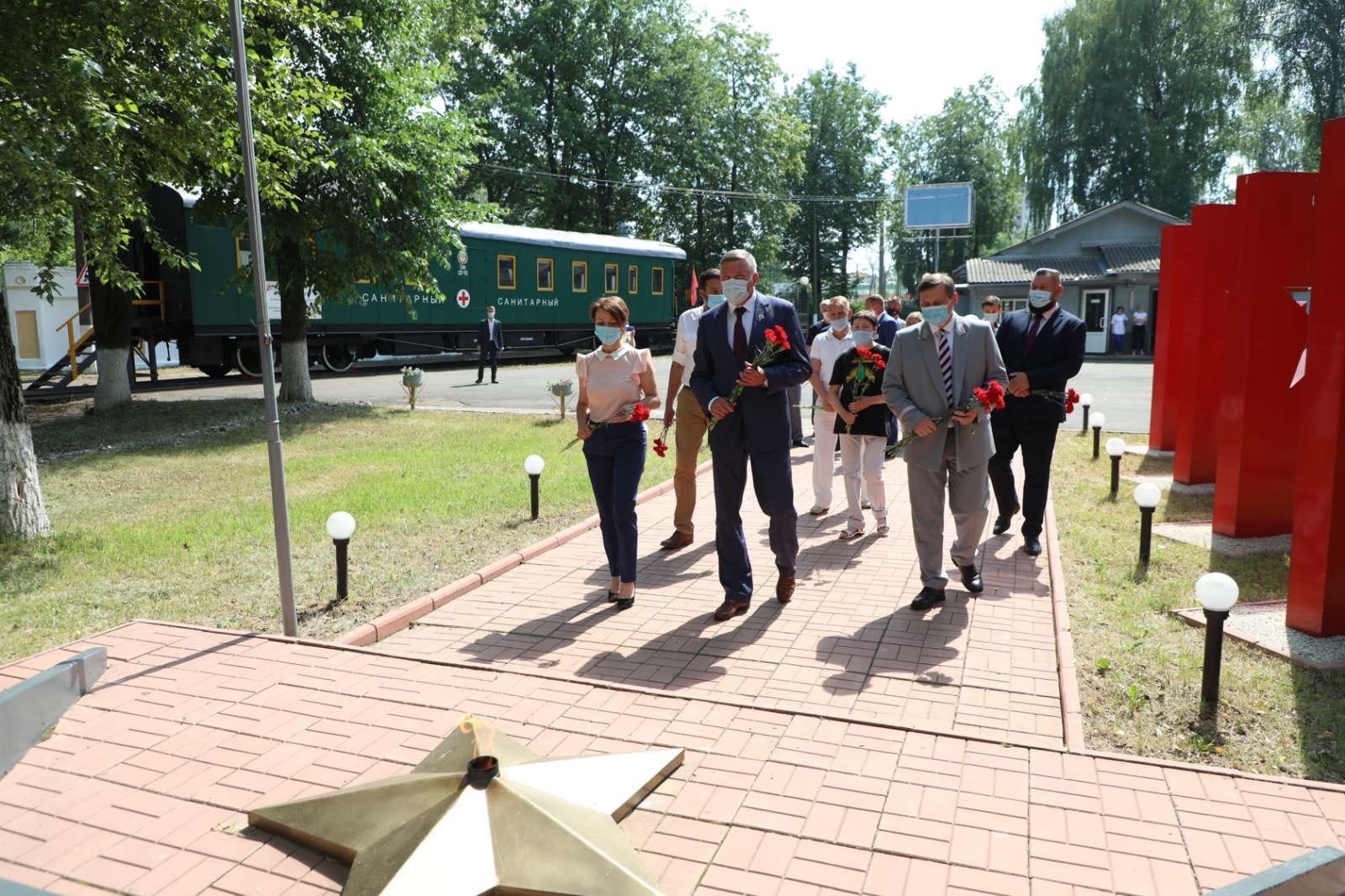 Губернатор области вместе с вологодскими поисковиками почтили память погибших на фронте заводчан, возложив цветы к мемориалу на территории завода. «Работники нашего завода внесли огромный вклад в Победу. Больше 2 тысяч человек награждены орденами и медалями, четверо – Герои Советского Союза – это уникальное достижение. И очень важно, что в самом начале войны легендарный военно-санитарный поезд отправился на фронт и начал спасение раненных. Здорово, что этот музей создан и сегодня это символ истории и великой Победы нашего народа», – отметил Олег Кувшинников.