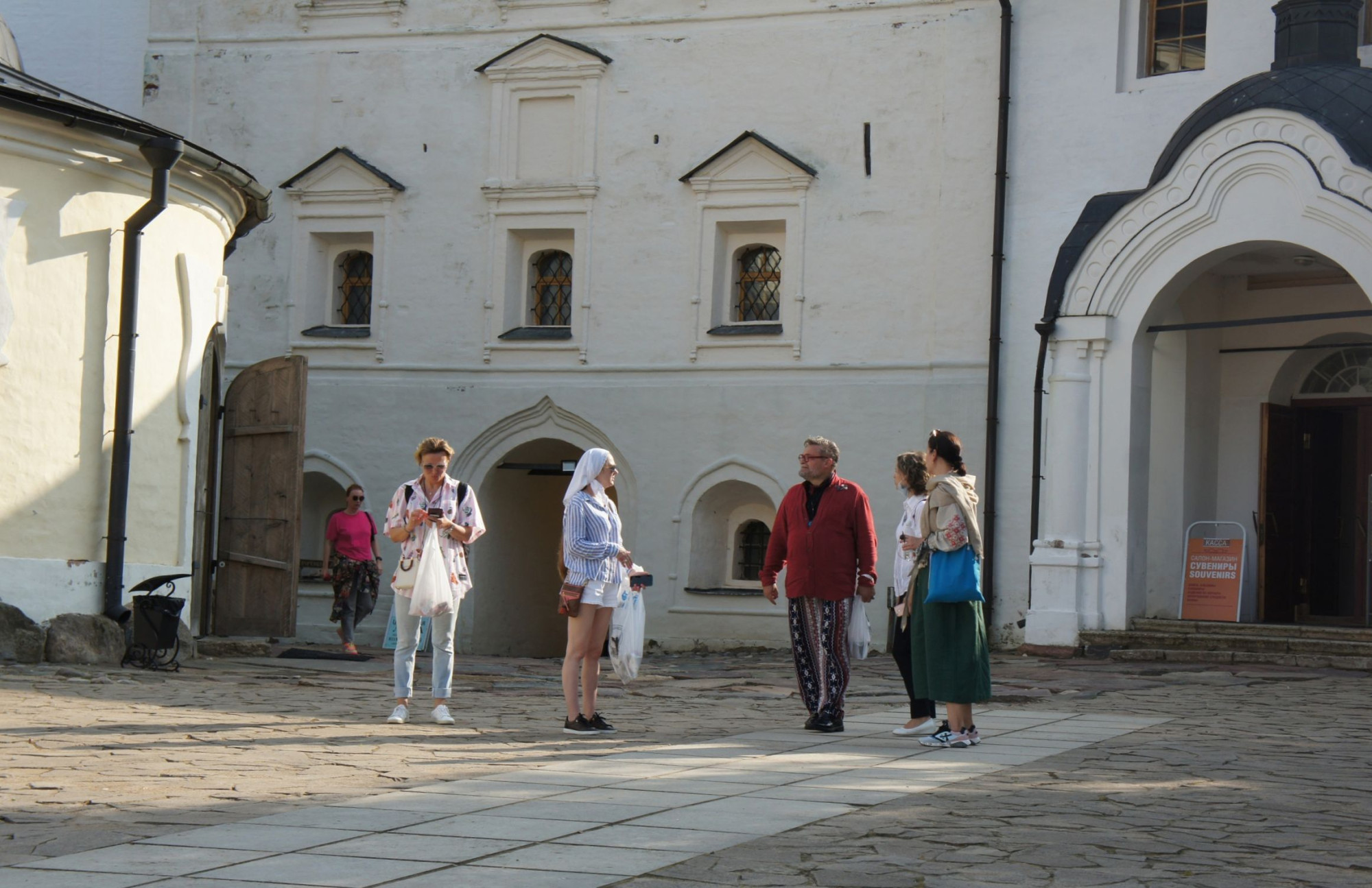 За время экскурсии по Кирилло-Белозерскому музею-заповеднику Александр Васильев познакомился с историей и архитектурой ансамбля монастыря, побывал в Трапезной палате и на колокольне XVIII века, принял участие в экскурсии «С высоты птичьего полёта» и, конечно, не удержался от посещения первой каменной постройки монастыря – Успенского собора, хотя этот объект и не входил в планы творческой группы.