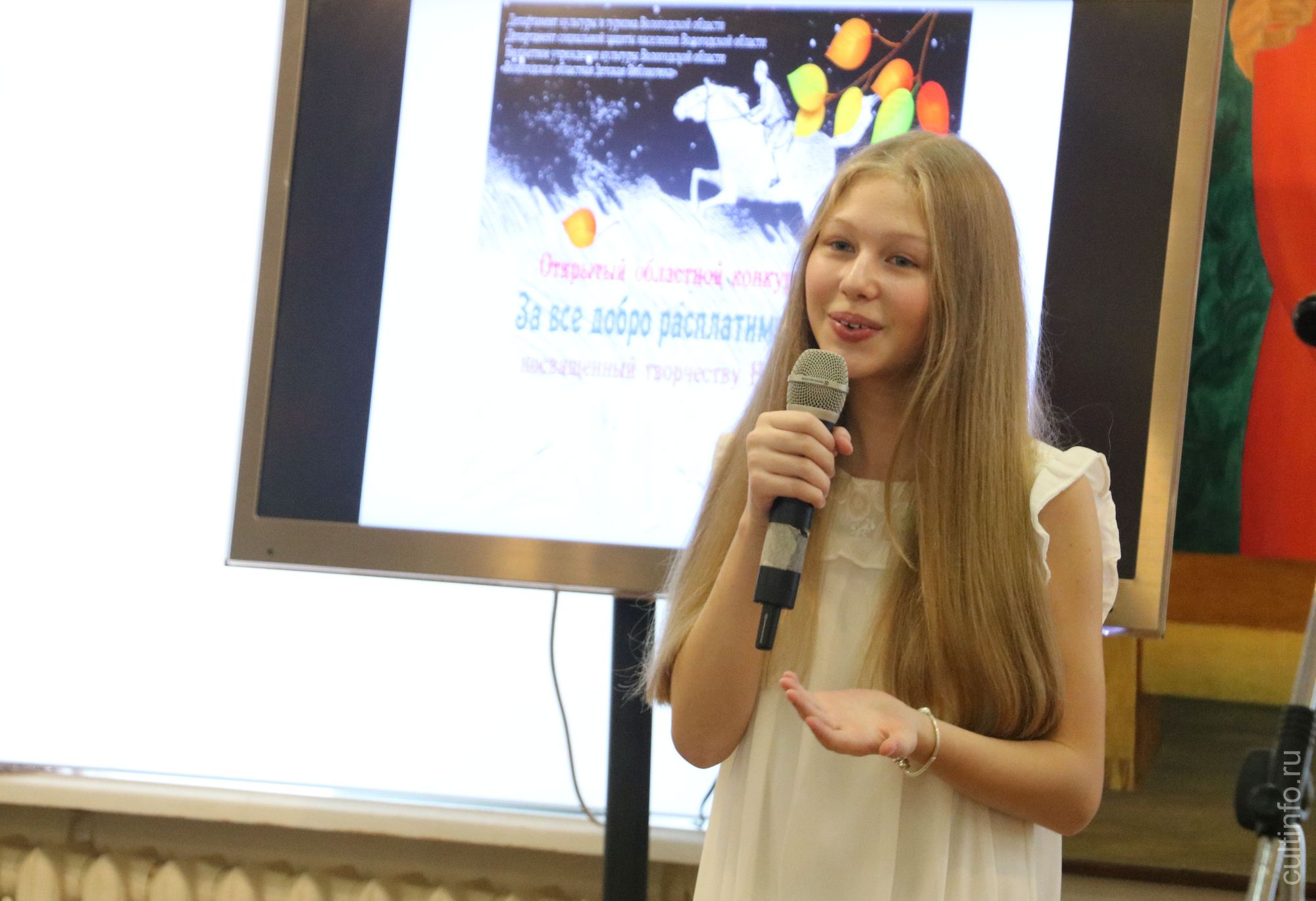 Сегодня в Доме Корбакова состоялась торжественная церемония награждения победителей. Собравшихся приветствовала директор Вологодской областной детской библиотеки Ольга Васильева: «Я очень рада, что в конкурсе, который в этом году впервые проводится в открытом формате, приняли участие ребята не только из Вологодской области, но и из разных уголков нашей огромной страны. Все мы знаем, что детство Николая Рубцова, которое прошло в Тотемском районе, не было простым и беззаботным. Рубцов рано оказался в детском доме, был лишен родительской заботы и тепла, но, несмотря на это, вырос добрым и духовно сильным человеком, любящим Родину, ее людей и ее природу». Ольга Васильева пожелала ребятам, чтобы рубцовские строчки «За все добро расплатимся добром, за всю любовь расплатимся любовью!» стали для них девизом.