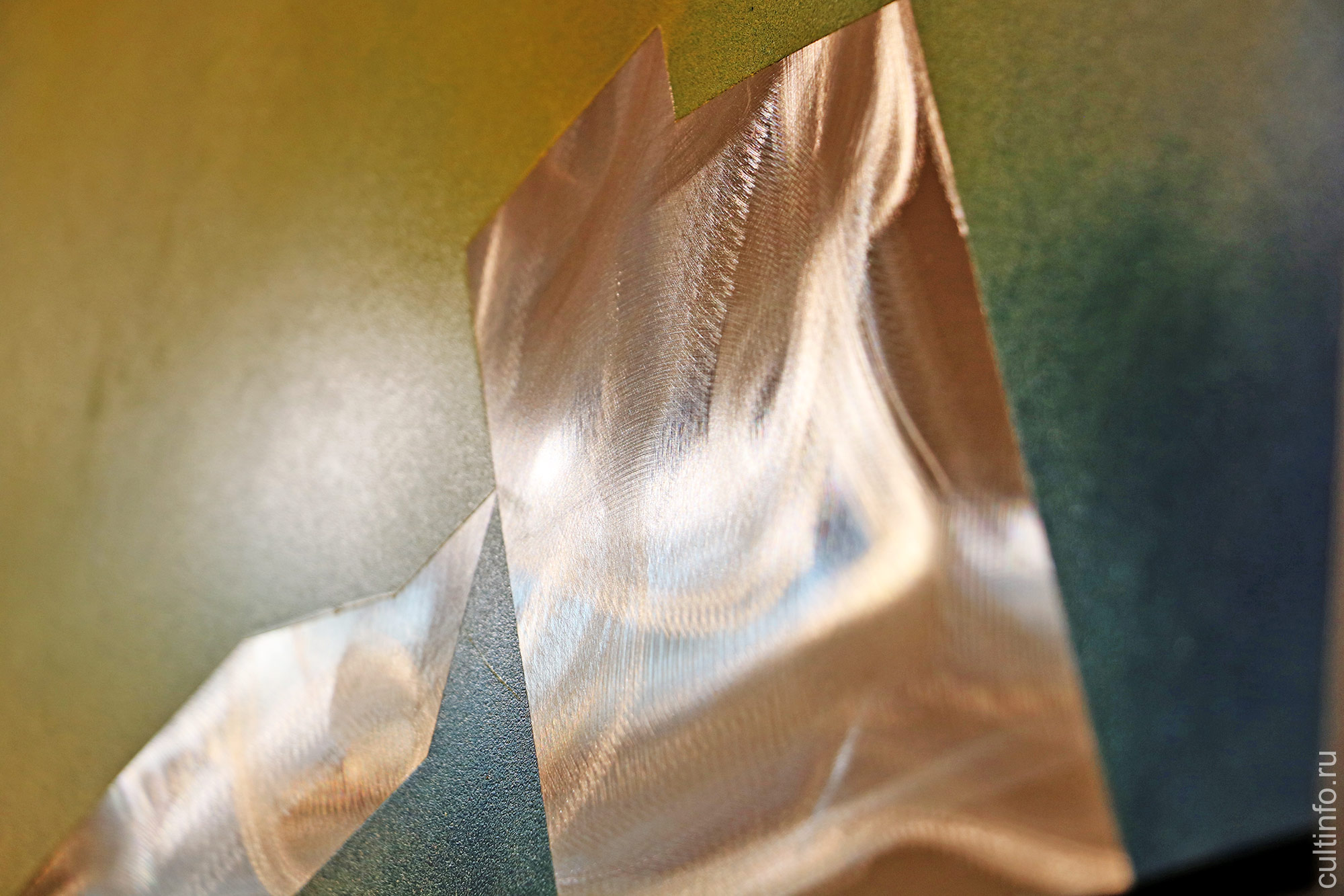 Погружение в материал и постоянный творческий поиск привел мастера к новым формам – он стал использовать металл как холст. Трехмерность и суровость произведений сменилась игрой преломленного света и яркими тонами. Насыщенный цвет, геометрические узоры, меняющиеся отражения и отблески усиливают ритм и создают напряженность. Новая форма – новая энергия, порой выходящая за грани, и об этом свидетельствуют названия многих работ.