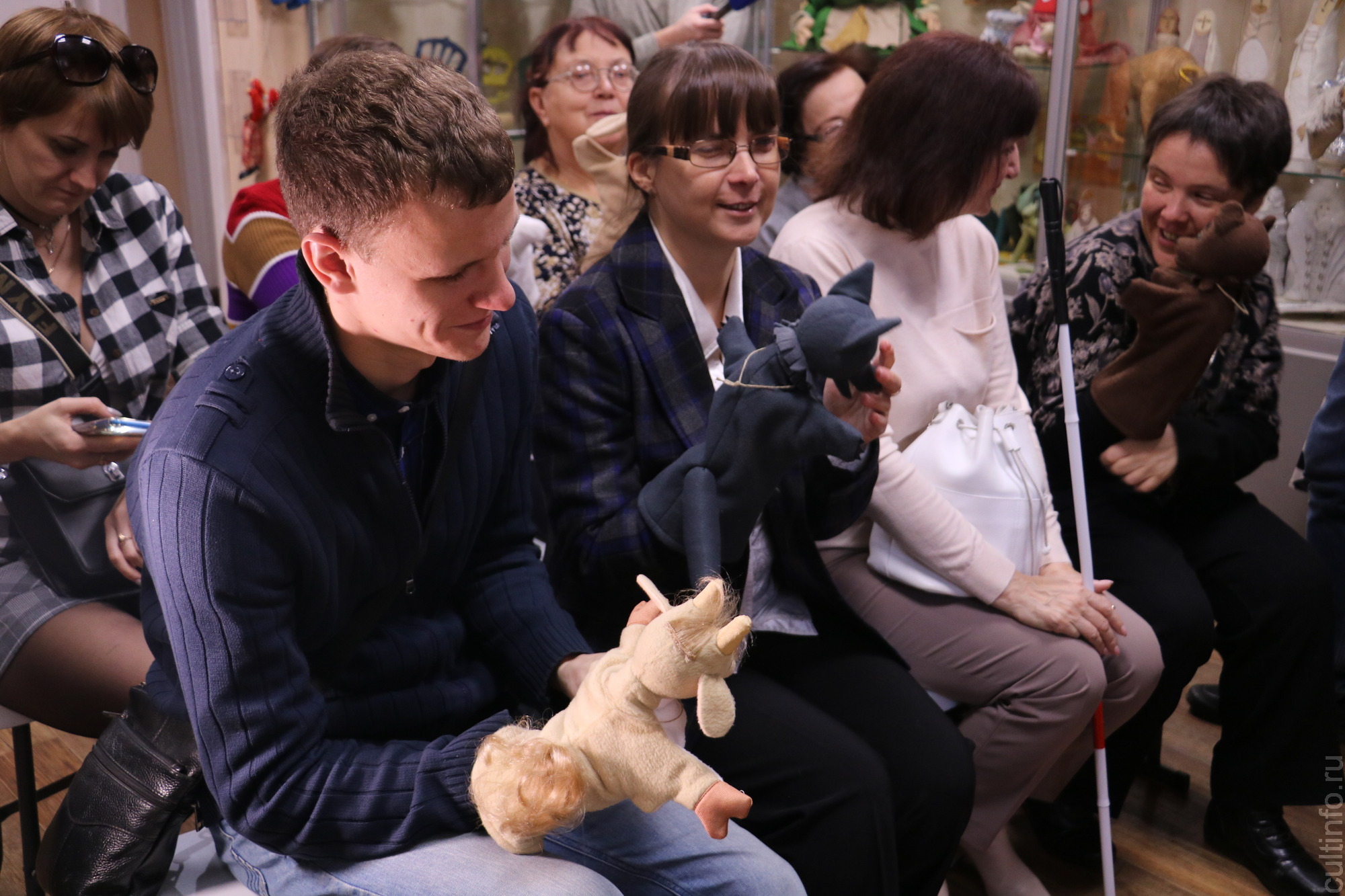 Посетителями первой экскурсии с тифлокомментированием по выставке «За кулисами театра кукол "Теремок"» стали представители Вологодской местной организации ВОС и Вологодской региональной организации всероссийского общества слепых.