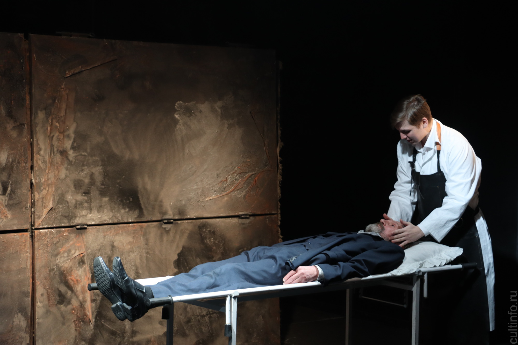 В камерной обстановке история обретает особенный внутренний накал, и актриса Полина Бычкова проживает эту непростую роль, где буквально оголены все нервы. Ее напарник – друг детства Костик (Сергей Закутин) – в какой-то степени отражение ее самой: в его не слишком удачно сложившейся жизни она в чем-то видит саму себя. Возглавляет эту путешествующую троицу – труп отца (Андрей Светоносов), который в тот или иной момент начинает… общаться с дочкой, словно помогая ей прожить боль и понять саму себя.