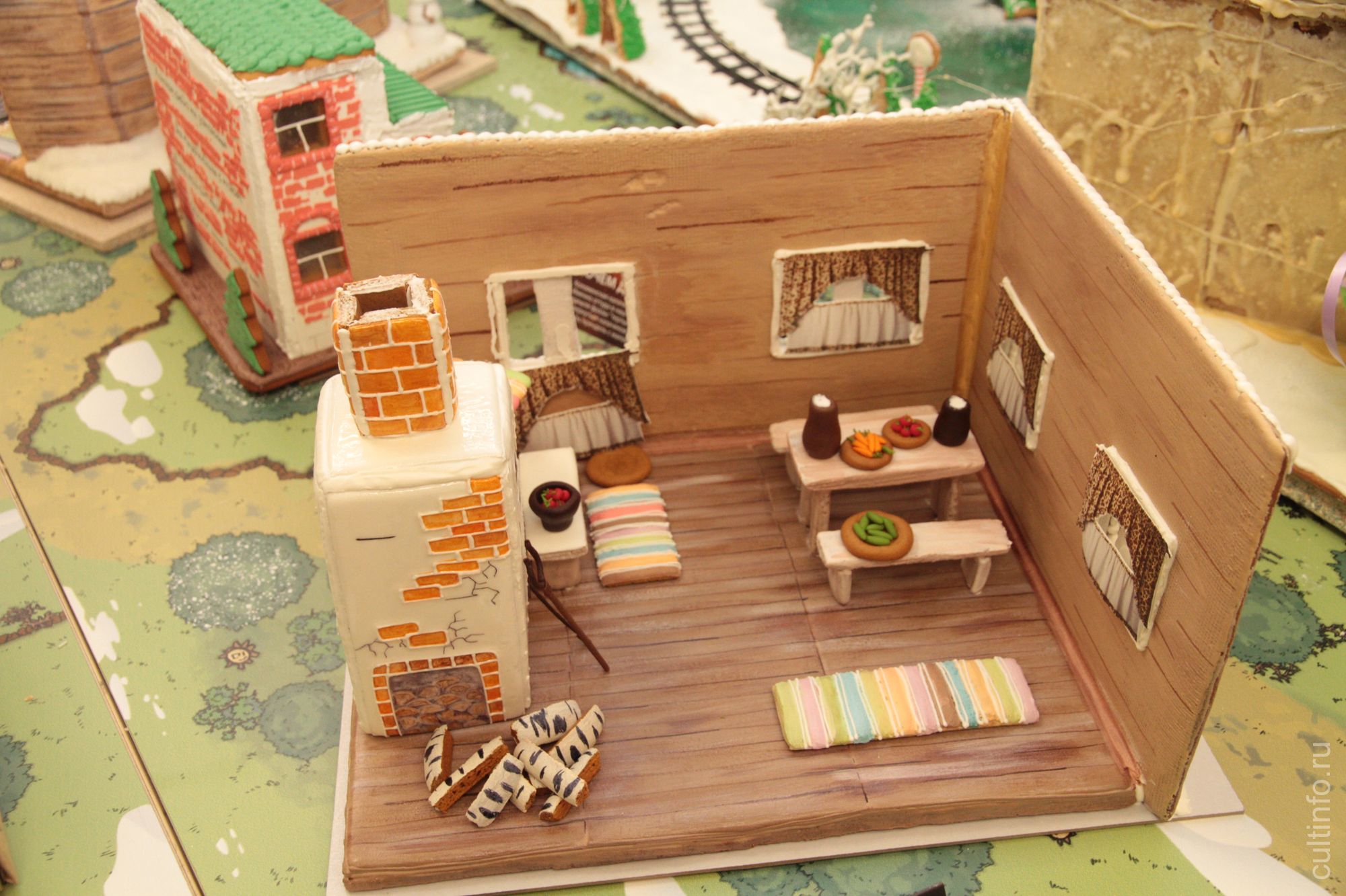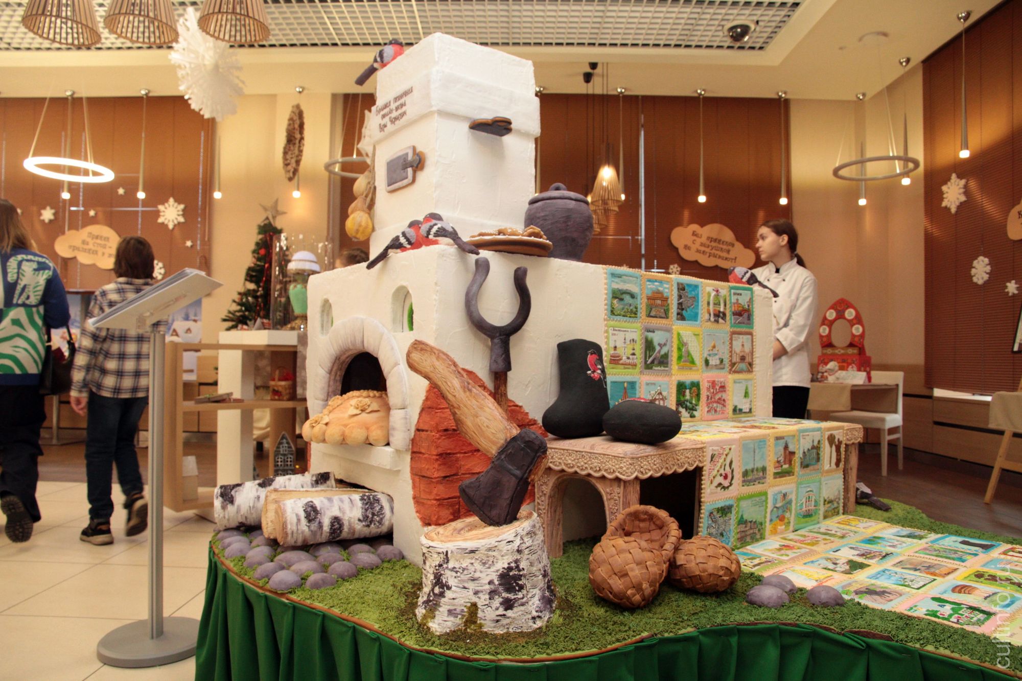 Поражает масштабами и съедобная «Русская печь». Автор проекта по ее созданию – руководитель Большой пряничной онлайн-школы Вера Черневич. Более 150 человек приняли участие в строительстве сказочной печи. Лоскутки для украшающего ее одеяла прислали ученики онлайн-школы со всех уголков страны. Есть там и вологодские работы. Деревянный дом с резным палисадом прислала дочь экскурсовода Александра Сазонова Полина Зелова. Череповчанка Светлана Трегубова выбрала «самое романтическое место в городе» – Усадьбу Гальских. Тотемский пейзаж изобразила на своем лоскутке москвичка Ирина Казаринова.