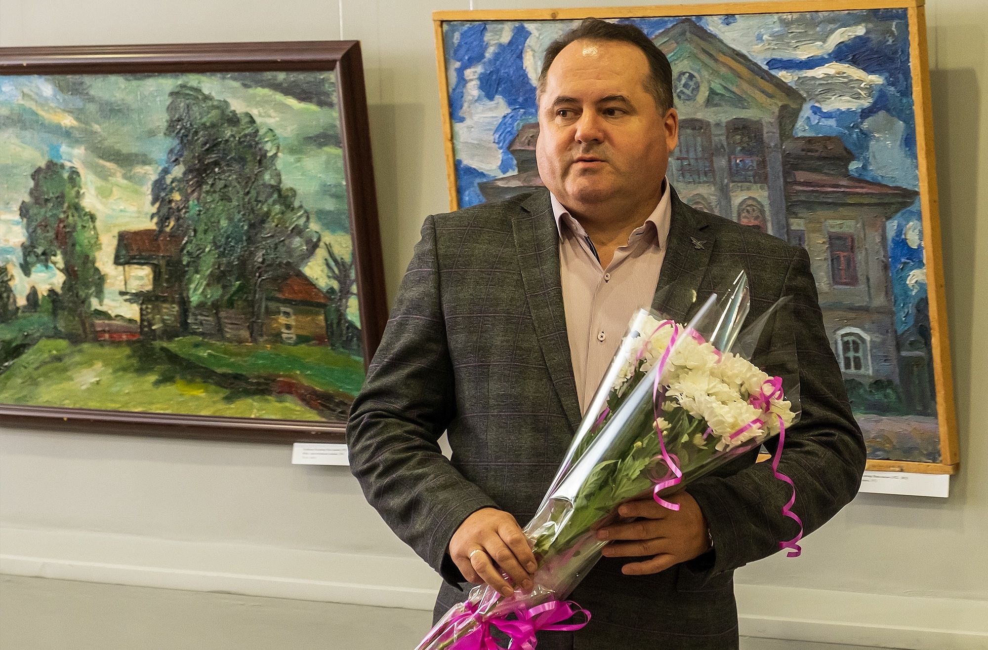 На открытии прозвучали музыкальные произведения в исполнении ансамбля преподавателей Сокольской школы искусств и авторского коллектива «Доверие», а также поэтическое произведение Александра Романова «Диалог с художником Корбаковым», строки из которого послужили названием выставки.