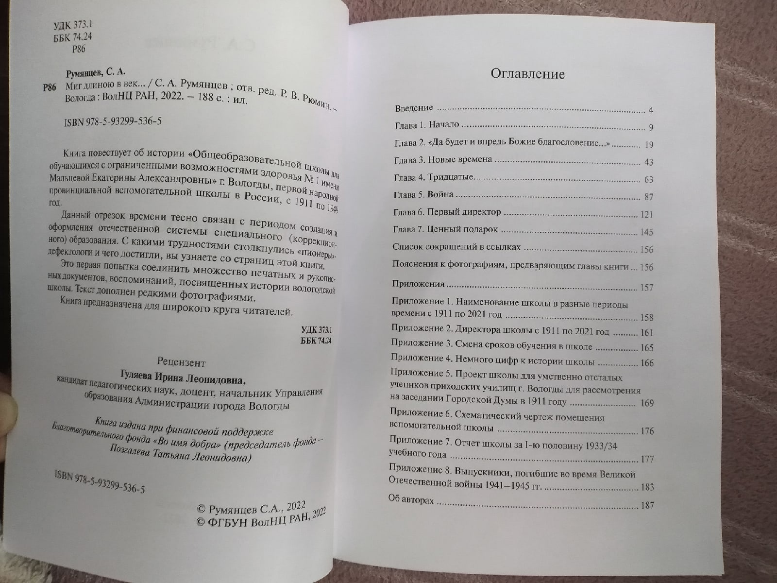 Вологодский краевед и педагог, почётный работник общего образования РФ Сергей Румянцев написал книгу об истории Общеобразовательной школы для обучающихся с ограниченными возможностями здоровья №1 города Вологды. Книга «Миг длиною в век…» издана в год 110-летнего юбилея специального коррекционного учреждения.
