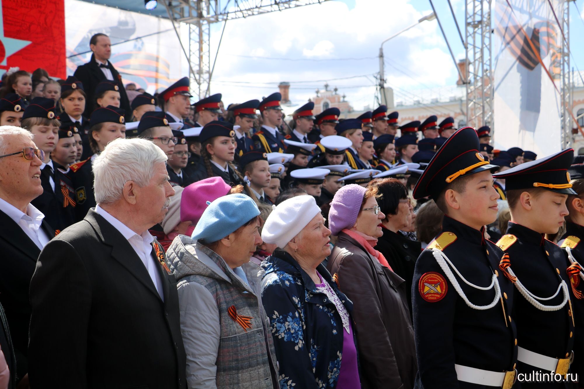В Кировском сквере для вологжан и гостей города было открыто 10 творческих и интерактивных площадок фестиваля военно-патриотического творчества «Была весна, была Победа!». На праздничном концерте выступили победители одноименного городского конкурса среди студентов и работающей молодежи.