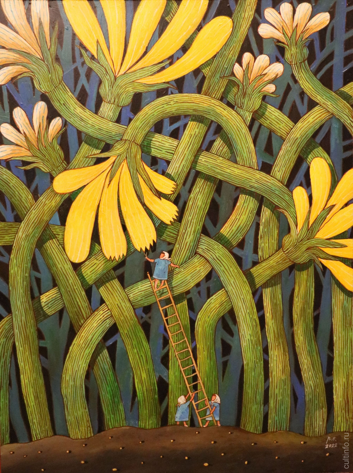 Увидеть «Сны огромного кита», узнать, что у чисел тоже могут быть портреты, представить, как выглядят парикмахеры цветов, можно на выставке «Новые имена» в Доме Корбакова. 20 живописных и графических работ современных вологодских художников очень органично смотрятся в стильном пространстве каминного зала.