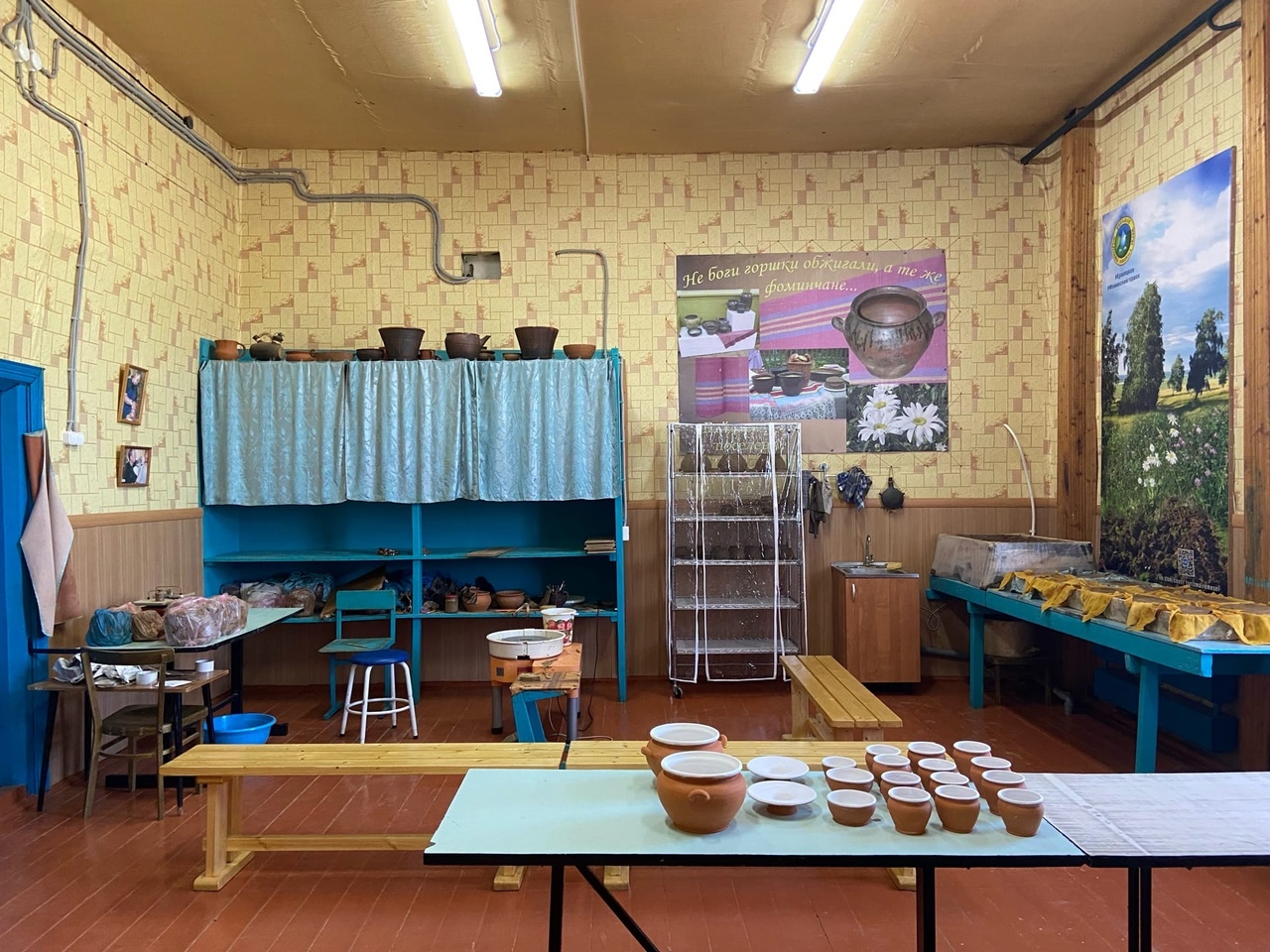 В гончарную мастерскую приобрели стол для занятий и мастер-классов, стеллажи для сушки глиняных изделий, оборудование для технологического процесса. Были напечатаны буклеты о фоминском промысле, особенностях технологии и мастерах.