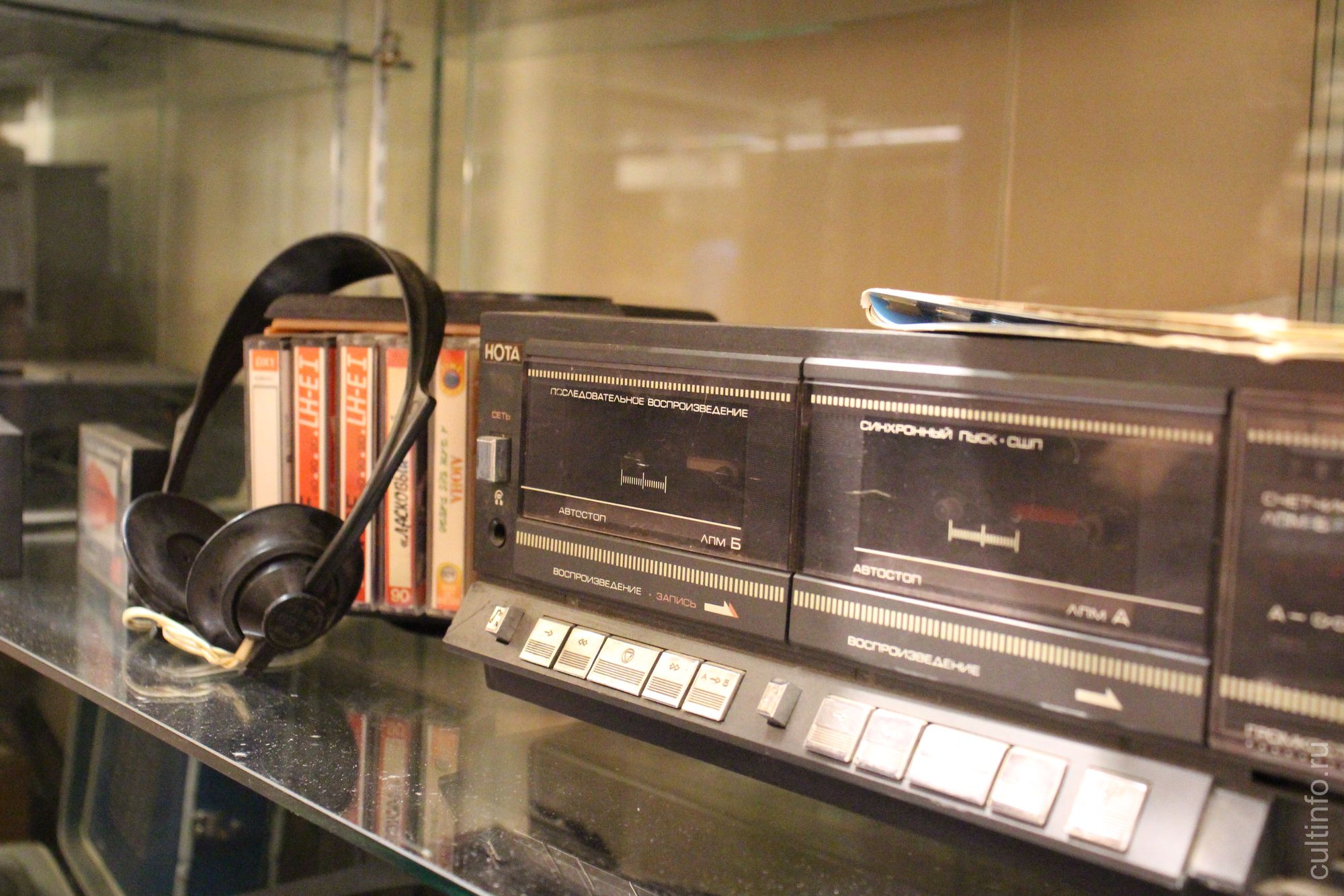 Интересна также двухкассетная приставка. Подобные аппараты позволяли переписывать музыку с кассеты на кассету. Также у них была функция автостарта: когда одна кассета заканчивалась, автоматически начинала играть вторая.