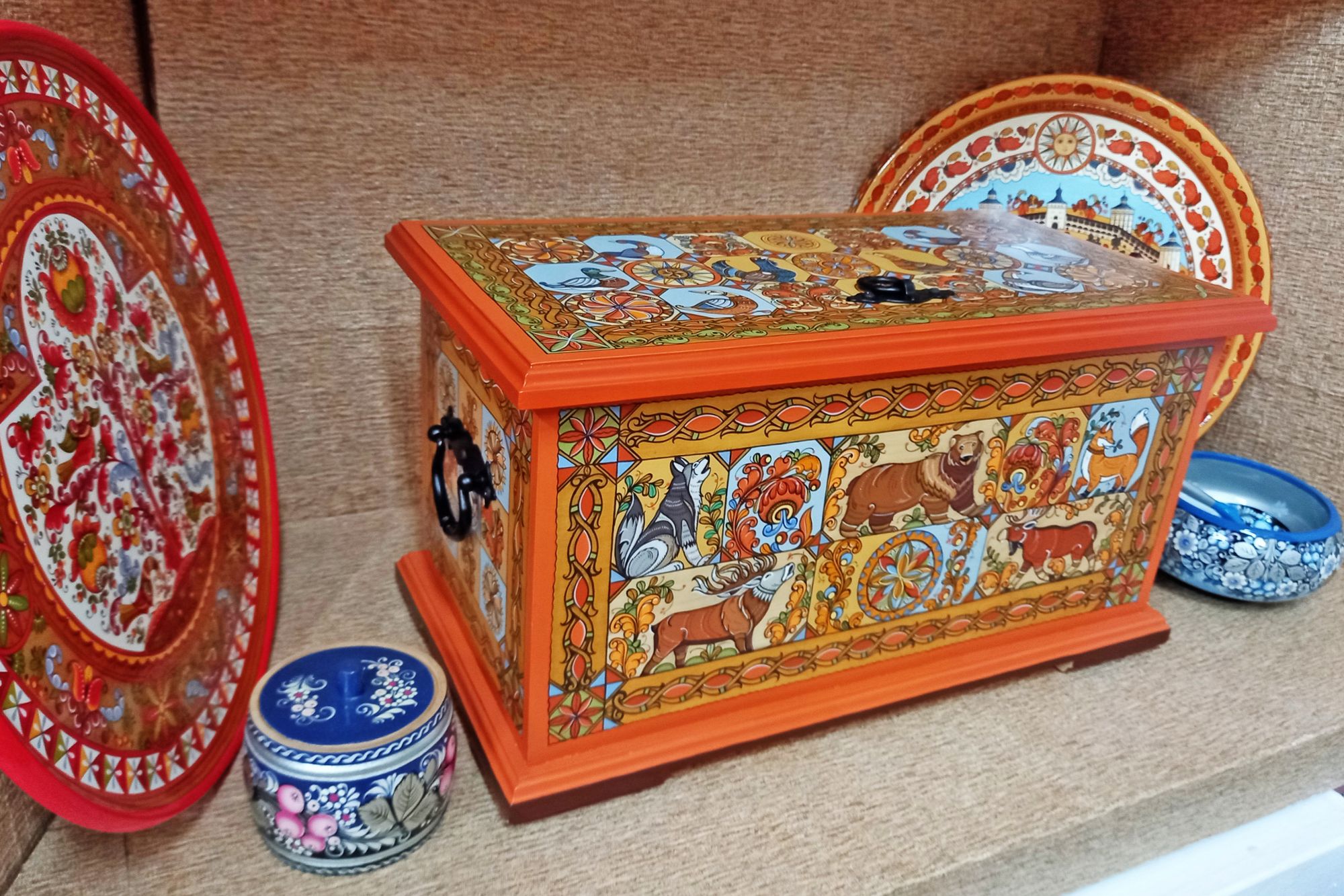 В Покровском представлены изделия с грязовецкой росписью, бытовавшей в Грязовецком уезде Вологодской губернии.