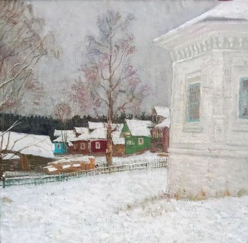 Легко заметить устойчивость в выборе пейзажных мотивов. В разных вариантах и сочетаниях, от работы к работе художник поистине поклоняется этому уголку малой родины на своем берегу. В пейзажах художника можно отметить нечто общее, что проходит лейтмотивом почти через все творчество художника – это удивительная гармония, тишина и покой. В них нет драматизма и столкновений – лишь умиротворенность и порой тихая грусть. Художник словно пишет зримый рассказ о красоте русской природы во все времена года и во всех ее состояниях, передавая в этюдах и картинах свои переживания и чувства.