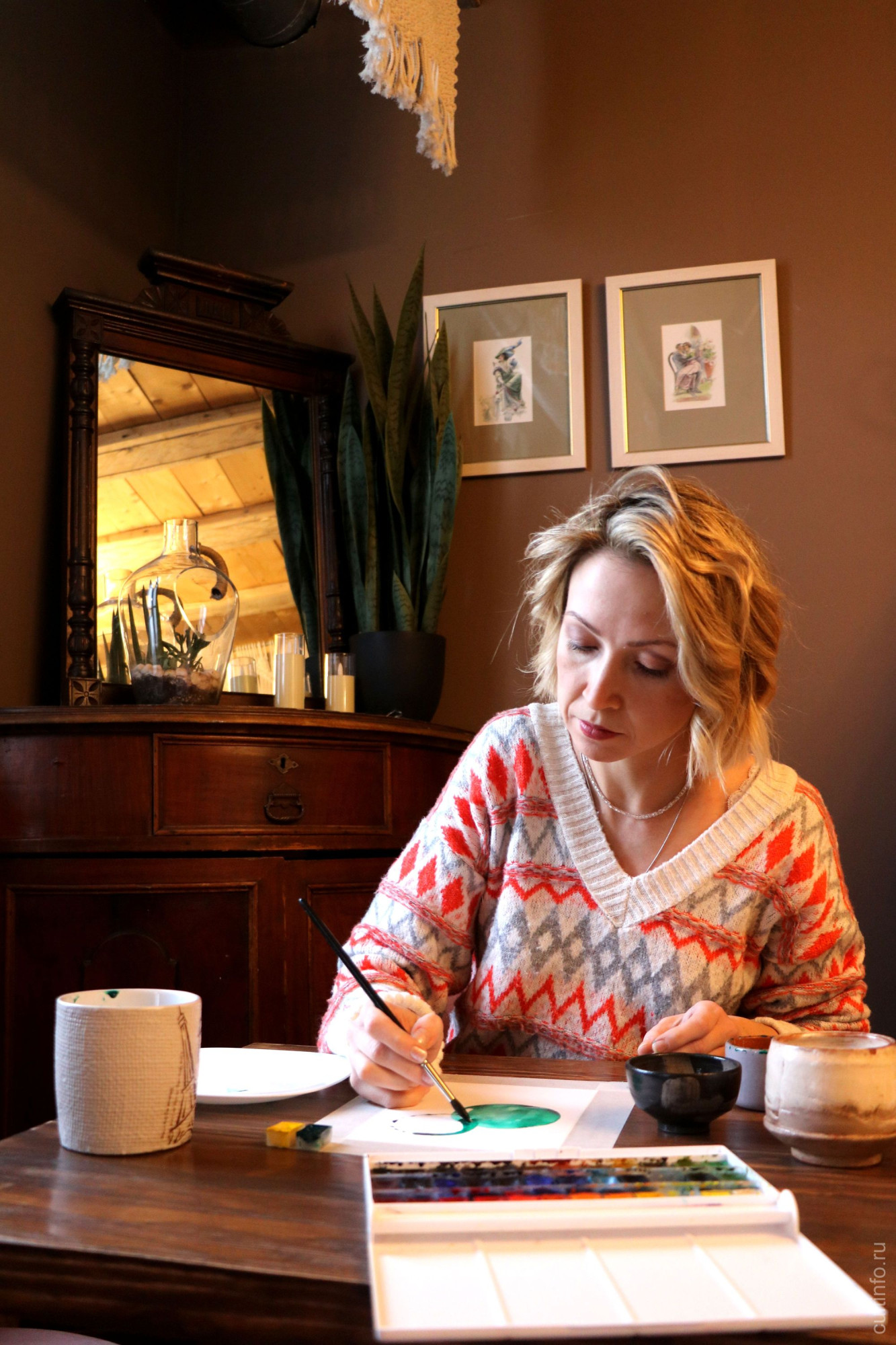 «Главный секрет – не бояться рисовать! Даже если что-то не получится с первого раза, можно взять в руки кисть и попробовать снова. Не нужно старательно вырисовывать линии, чем живее получится рисунок, тем лучше. Рисуйте на плотной и фактурной акварельной бумаге – она не намокнет, а краска будет растекаться красиво. Чтобы бумага не съезжала, советую зафиксировать ее на поверхности стола с помощью малярного скотча. Используйте широкую круглую кисть с тонким кончиком, чтобы мазки получались объёмными. Приятного творчества!» – дает напутствие участникам мастер-класса Татьяна Лобанова.