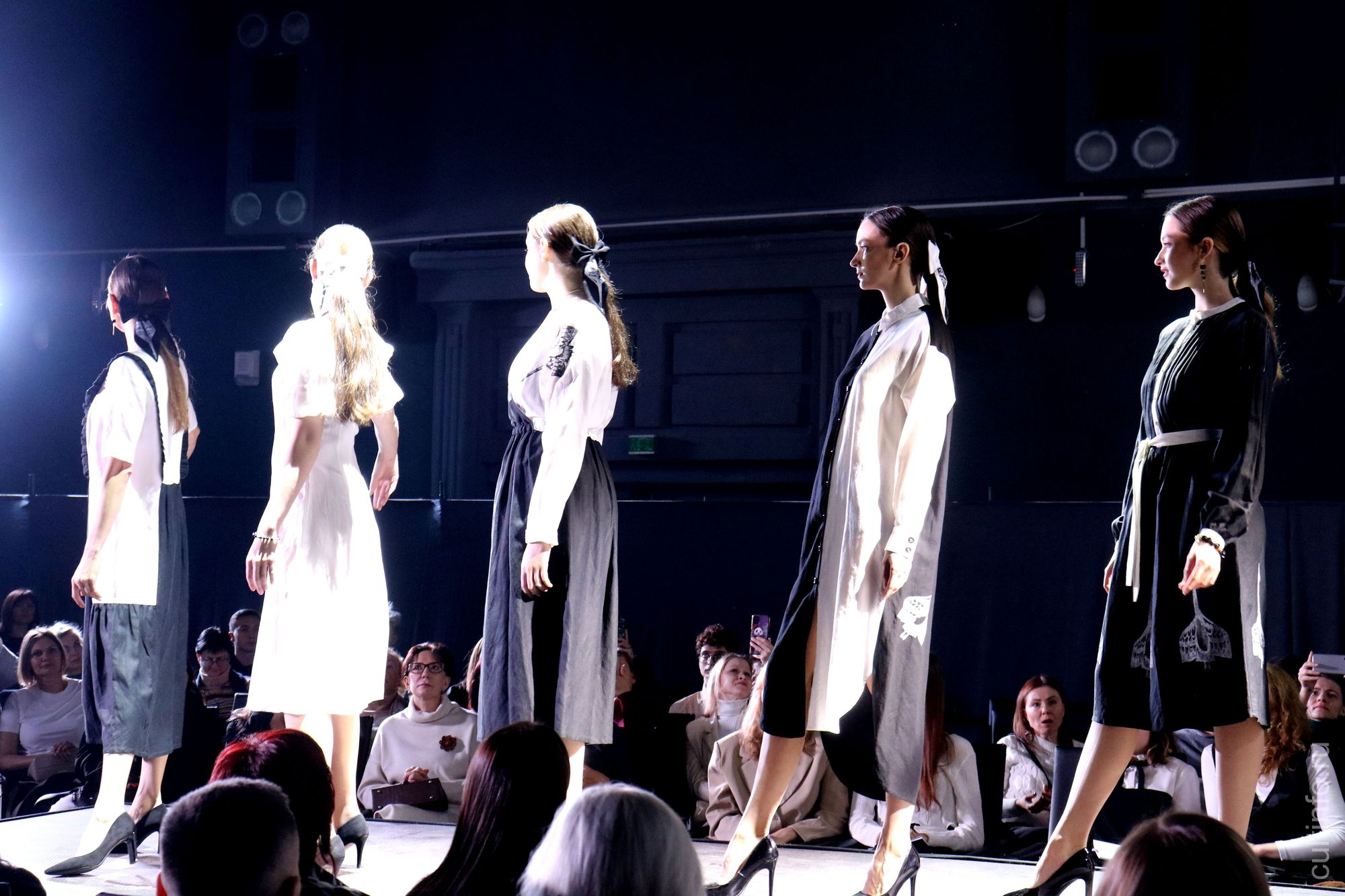 Фэшн-выходной «Строчка» стал настоящим праздником стиля и красоты. Особенно радостно, что в творчестве дизайнеров нашли отражение культурные символы Вологодчины. Локальной идентичностью и глубоким смыслом наполнена коллекция «Журавли» Юлии Коковиной. Графика Бурмагиных определила цвет платьев, которые выполнены в черном, белом и натуральных оттенках.