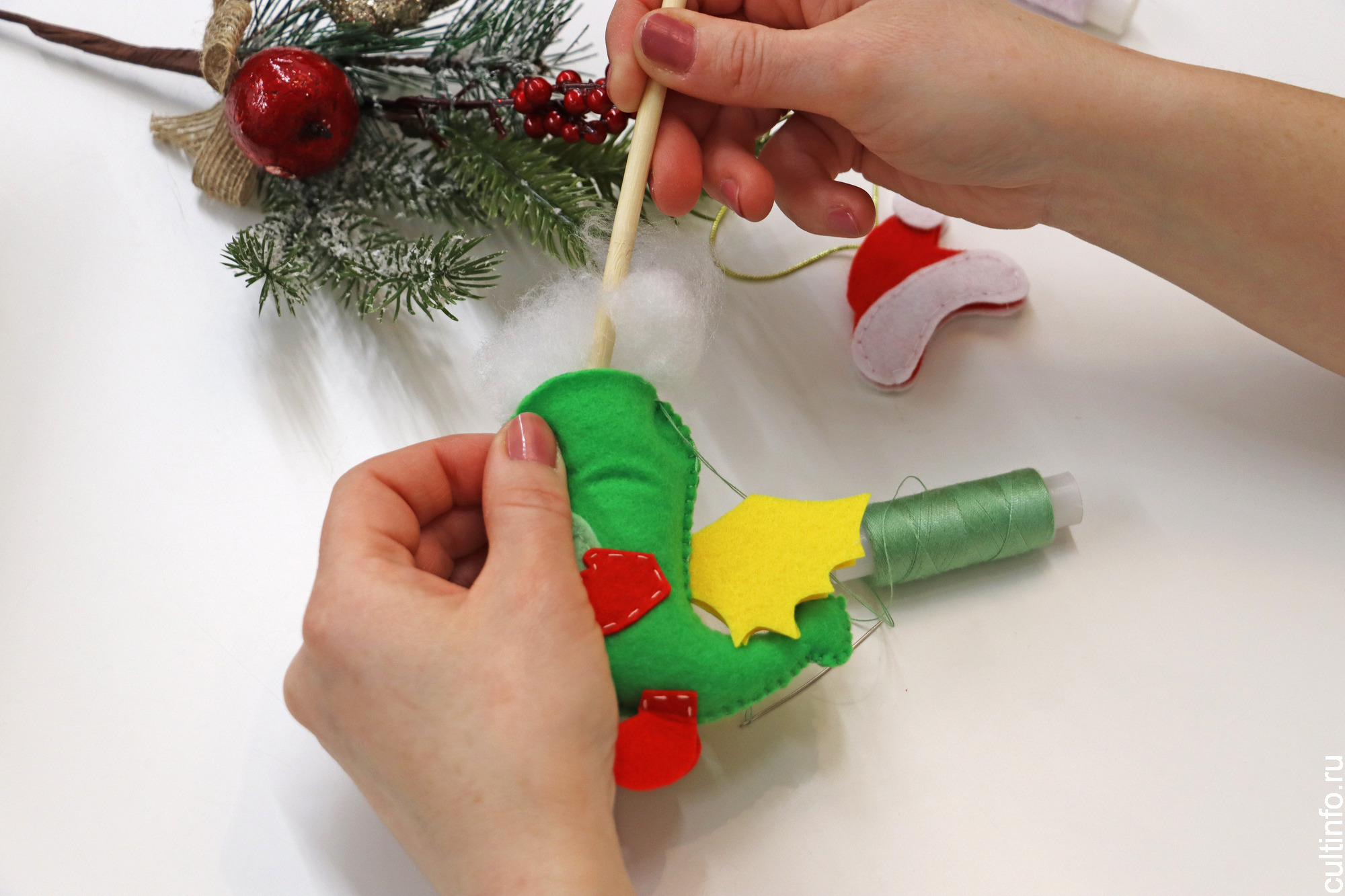 * мягкий фетр (рекомендуем использовать корейский) зеленого, красного и белого цвета;