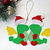 1. Готовим выкройку (ее можно скачать здесь) и переносим ее на фетр. Бумажные детали можно обвести самоисчезающим маркером или просто зафиксировать на фетре обычным скотчем. Вырезаем два крыла из жесткого желтого фетра, пару рукавичек и валеночек из жесткого красного фетра, остальные части из мягкого – по две зеленые (при желании можно сделать другого цвета) детали туловища и животика оттенком светлее, две красные детали для шапки и две детали белого меха.