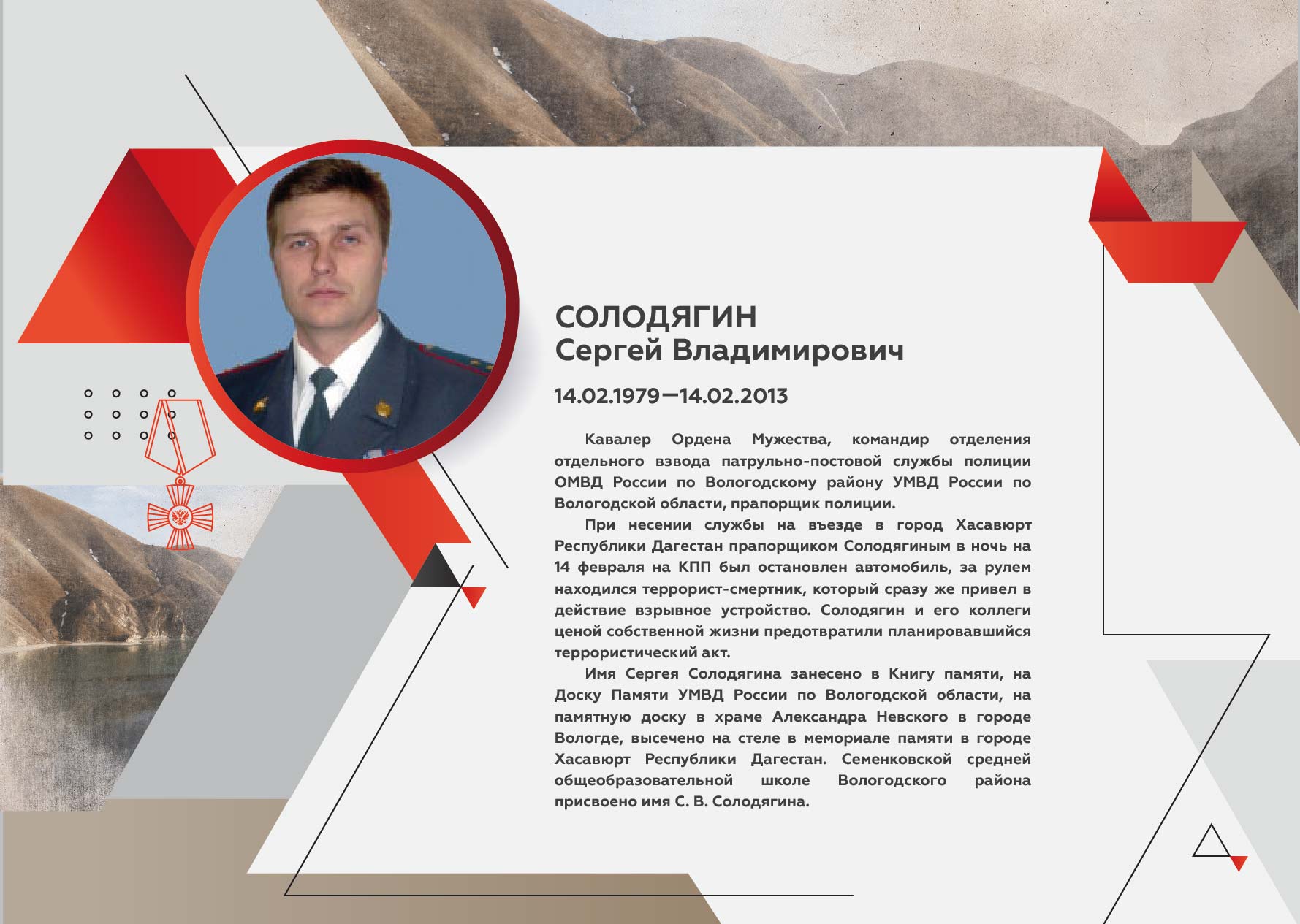 К памятной дате Управление по молодежной политике Правительства Вологодской области и молодежный центр «Содружество» разработали календарь «Вологодчина – земля героев». Он включает информацию об уроженцах Вологодской области – Героях России, кавалерах Ордена Мужества. Их имена сегодня носят улицы городов, школы, им посвящены памятные экспозиции, мемориальные доски, поставлены памятники.