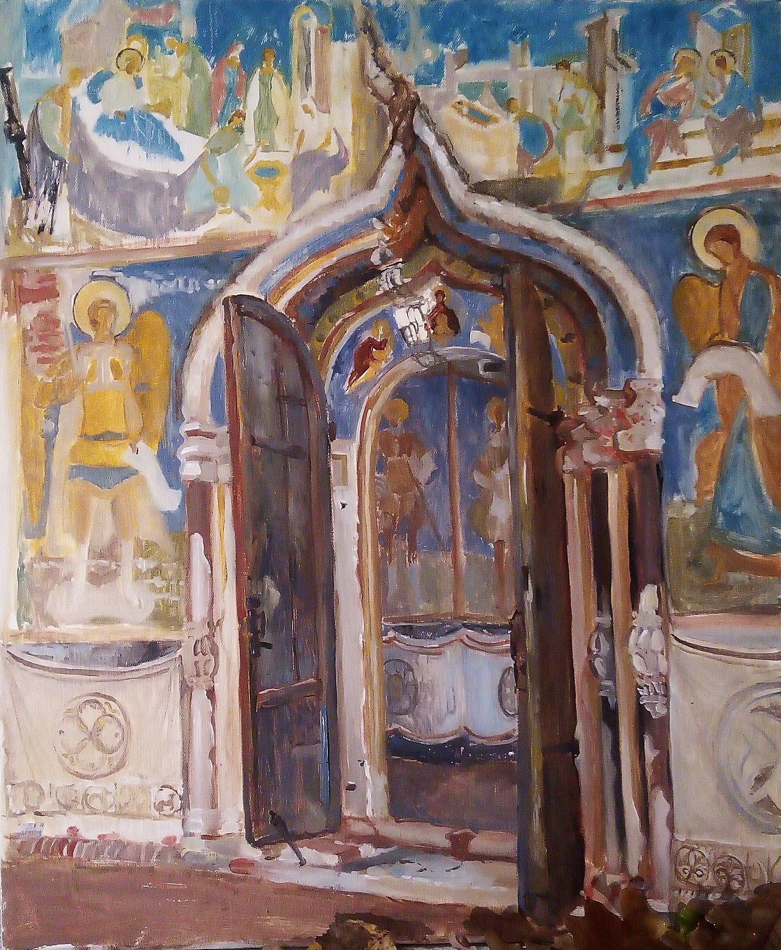 Выставка «На Родине любимой» посвящена уголкам России, связанным с жизнью и творчеством художника. Здесь представлены виды красивейших древних городов Вологодчины, а также Суздаля, Петербурга, Пушкина и многих других. Особое место занимают работы, говорящие о профессии автора – мастера церковного искусства, который занимается стенописью храмов. Именно интерьеры таких значимых памятников, как церковь Казанской Божией Матери, Покровской церкви и собора Рождества Богородицы Устюжны, вдохновили художника на создание отдельных полотен и на идею выставки в целом.