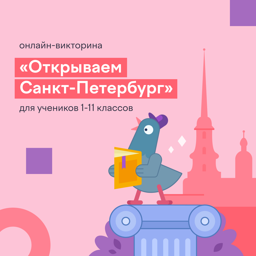 С 11 апреля по 15 мая на образовательной платформе Учи.ру проходит всероссийская онлайн-викторина «Открываем Санкт-Петербург» для учеников 1-11 классов. Организаторами выступают Администрация Санкт-Петербурга, Санкт-Петербургская академия постдипломного педагогического образования и АНО «Национальные приоритеты», Общероссийское общественно-государственное движение детей и молодежи «Движение Первых».