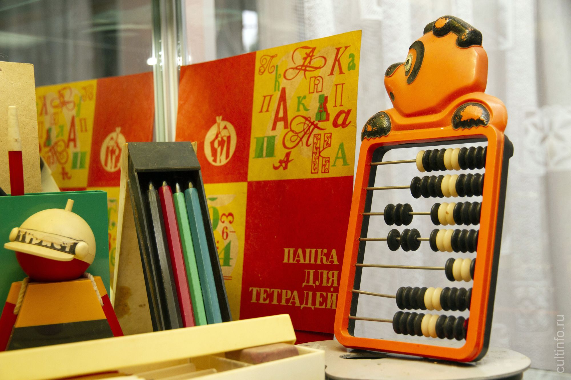 В зале библиотеки представлены школьные принадлежности дореволюционного и советского времени. В каждом предмете запечатлены приметы эпохи. И тем, кто внимательно рассматривает экспонаты, открываются любопытные детали.