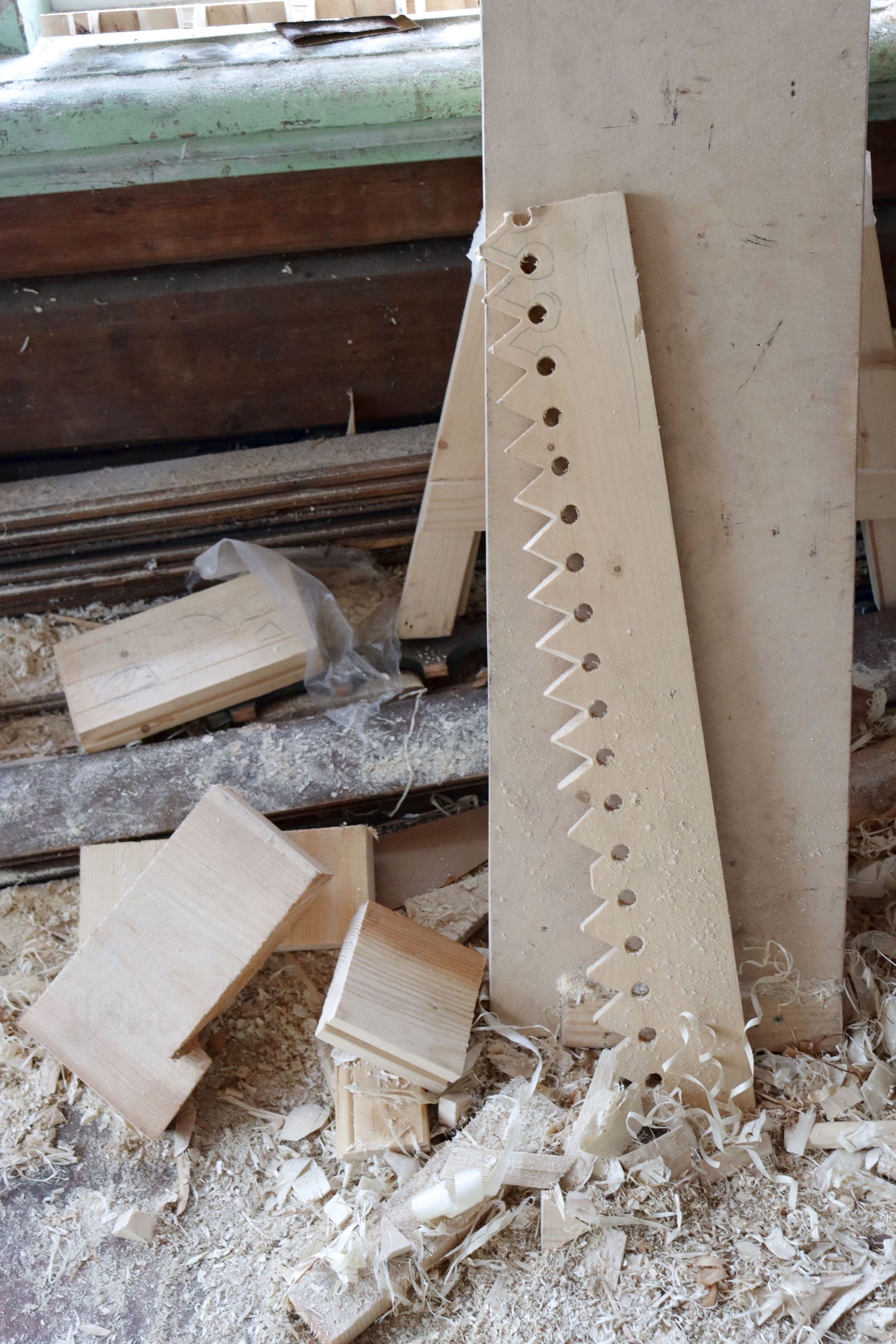 Ждет установки изящное ограждение из пропильных балясин. Займут свое место после реставрации и покраски в исторический охристый цвет подлинные входные двери.