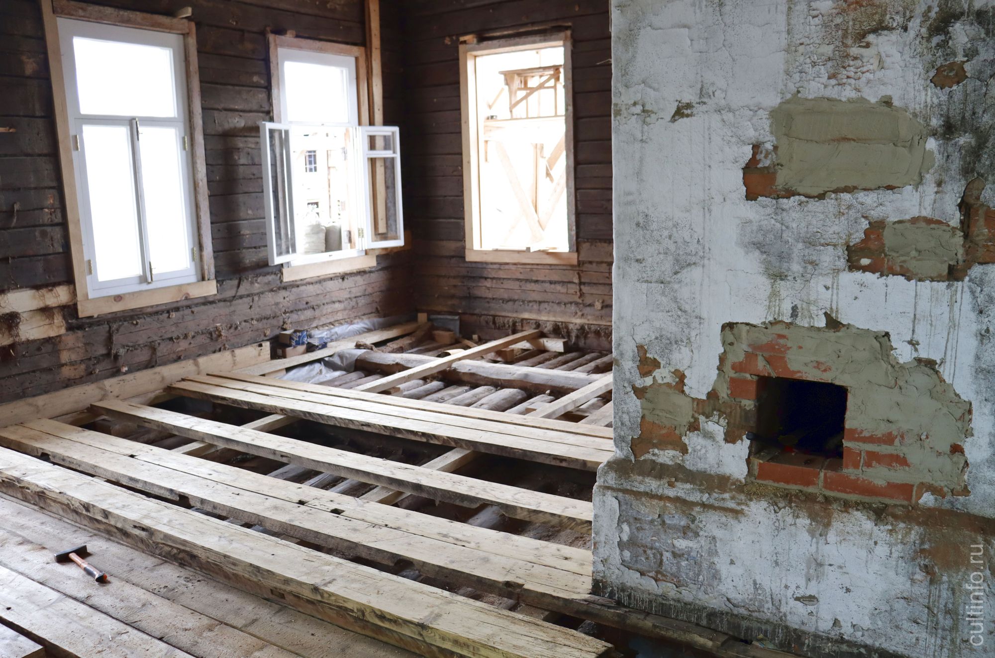 «Пока настилаем полы, выравниваем дверные колоды, сгнившие колоды меняем. Скоро начнем подготовку к отделочным работам. Внутренние стены будут частично зашиты гипсокартоном с утеплением, для того, чтобы дома было комфортно и тепло. Появятся новые перегородки, дополнительные санузлы», – рассказывает директор компании «Вологодские реставраторы» Владимир Новоселов.
