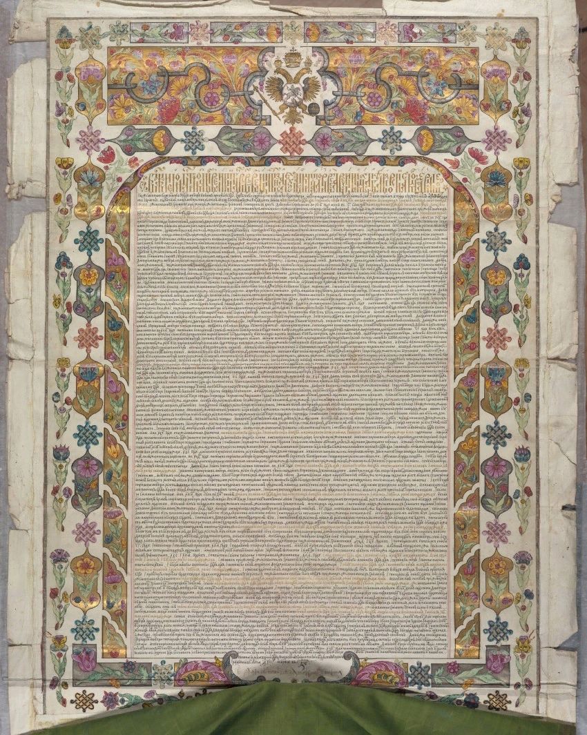 Выставка «Духовные оплоты Петра I» покажет предметы допетровской эпохи из коллекции Кирилло-Белозерского музея-заповедника – отреставрированную серебряную ладаницу 1609 года, икону «Кирилл Белозерский и Сергий Радонежский» XVII века, Жалованную грамоту царя Алексея Михайловича архимандриту Кирилло-Белозерского монастыря Никите с братией 1675 года, а также памятники, связанные не только с эпохой Петра Великого, но и лично с ним – например, герб Российской империи 1722 года, который был изготовлен специально к приезду Петра Алексеевича в Кирилло-Белозерский монастырь.