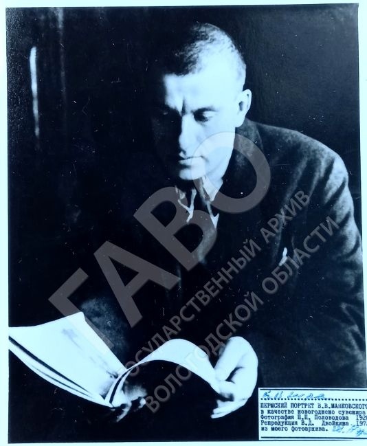 В Вологде также сохранились и другие подтверждения популярности Владимира Маяковского. Государственный архив Вологодской области представил на своих ресурсах редкие документы, помогающие понять отношение советских граждан к поэту. Вот писатель Евгений Пермяк в качестве новогоднего сувенира посылает Виктору Гуре копию с фотографии Владимира Маяковского, сделанной фотографом П.П. Половодовым в 1928 году. А в переписке середины XX века женщины прикладывали к письму схемы для вышивки крестиком, где среди прочих рисунков был портрет поэта.