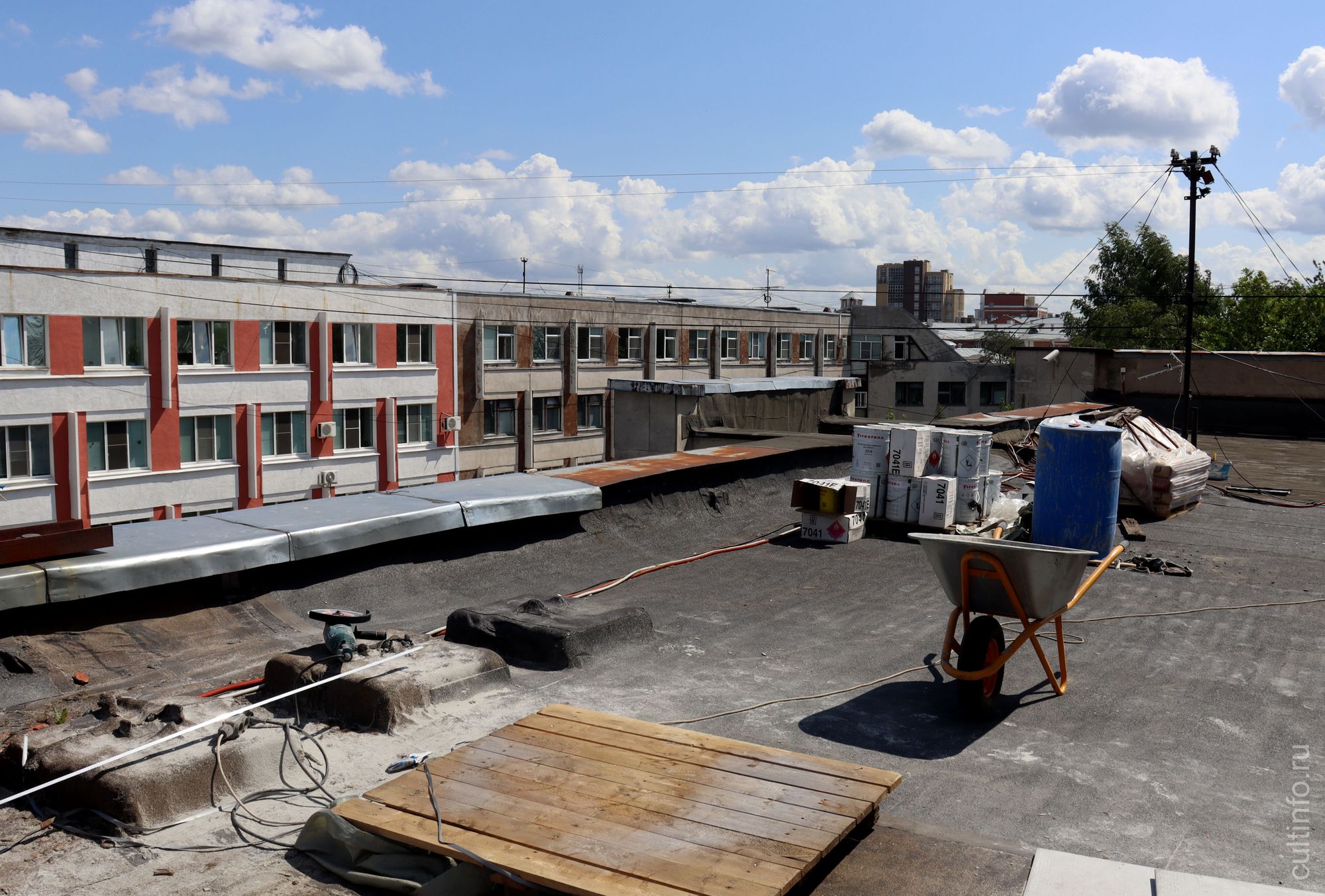 Сейчас на крыше театра начаты масштабные работы. Она будет покрыта прочным современным мембранным материалом, срок эксплуатации которого, как заявляет производитель, достигает 50 лет. Способ монтажа позволяет положить новое покрытие поверх зачищенного старого.