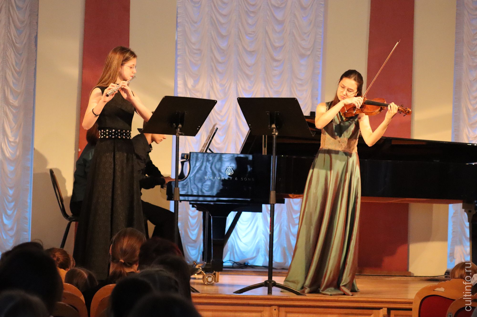 Первым событием форума стал концерт юных музыкантов – стипендиатов фонда поддержки искусств «Арт Линия», лауреатов международных конкурсов. Курирует это музыкальное направление на фестивале внучка Мусы Джалиля Татьяна Малышева, художественный руководитель фонда «Арт-линия». Концерт прошел при полном аншлаге, так же полные залы были и на первых кинопоказах форума. «Мы уже более 8 лет ездим с «КиноМаем» и выступаем на мероприятиях проекта. И даже многие наши дети успели вырасти и стать известными исполнителями. К вам мы привезли уже новое поколение талантливых юных музыкантов, для наших ребят это тоже бесценный опыт – и общение с творческими людьми, и знакомство с публикой разных городов. И мы очень рады были выступить у вас в Вологде и хотим и в дальнейшем вернуться с концертами в ваш город», – поделилась впечатлениями Татьяна Малышева.