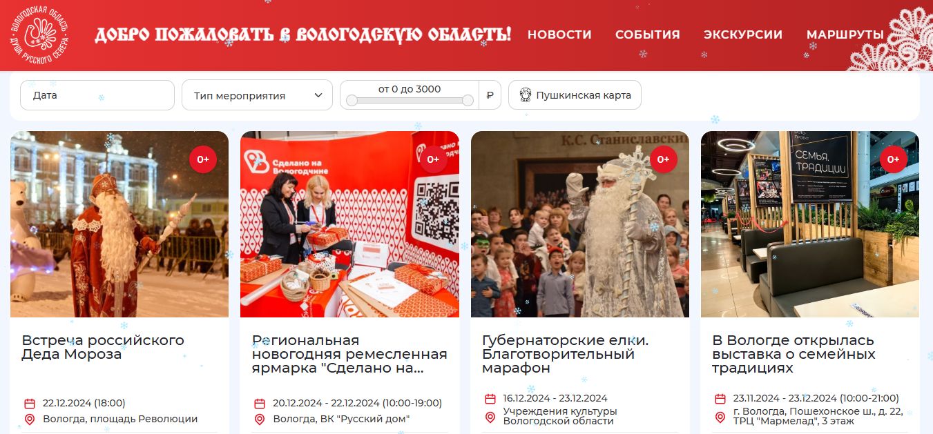 «Теперь планировать путешествие по Вологодчине стало еще проще. На туристическом портале Вологодской области можно узнать о популярных турмаршрутах, найти лучшие кафе и рестораны, забронировать отель, выбрать одно- или многодневный тур по уникальным уголкам нашего региона», – сказал Георгий Филимонов.