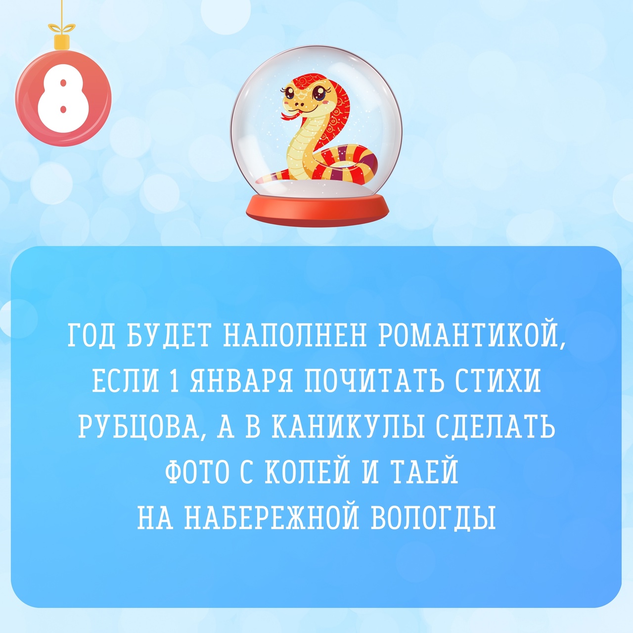 Предлагаем читателям cultinfo заглянуть в будущее – в этом помогут наши волшебные змейки. Мудрые существа точно знают, что ждет вологжан за поворотом судьбы.