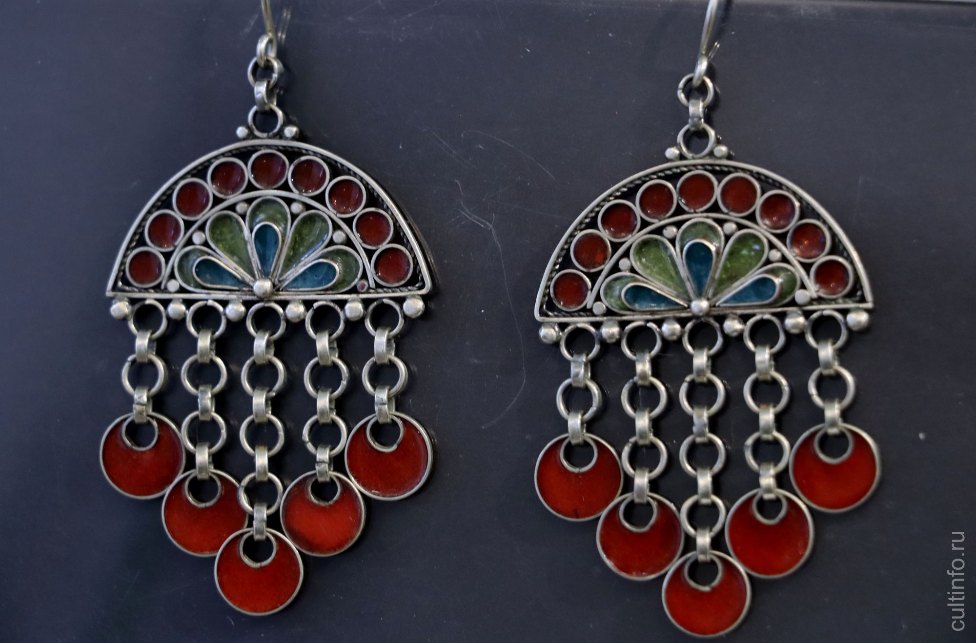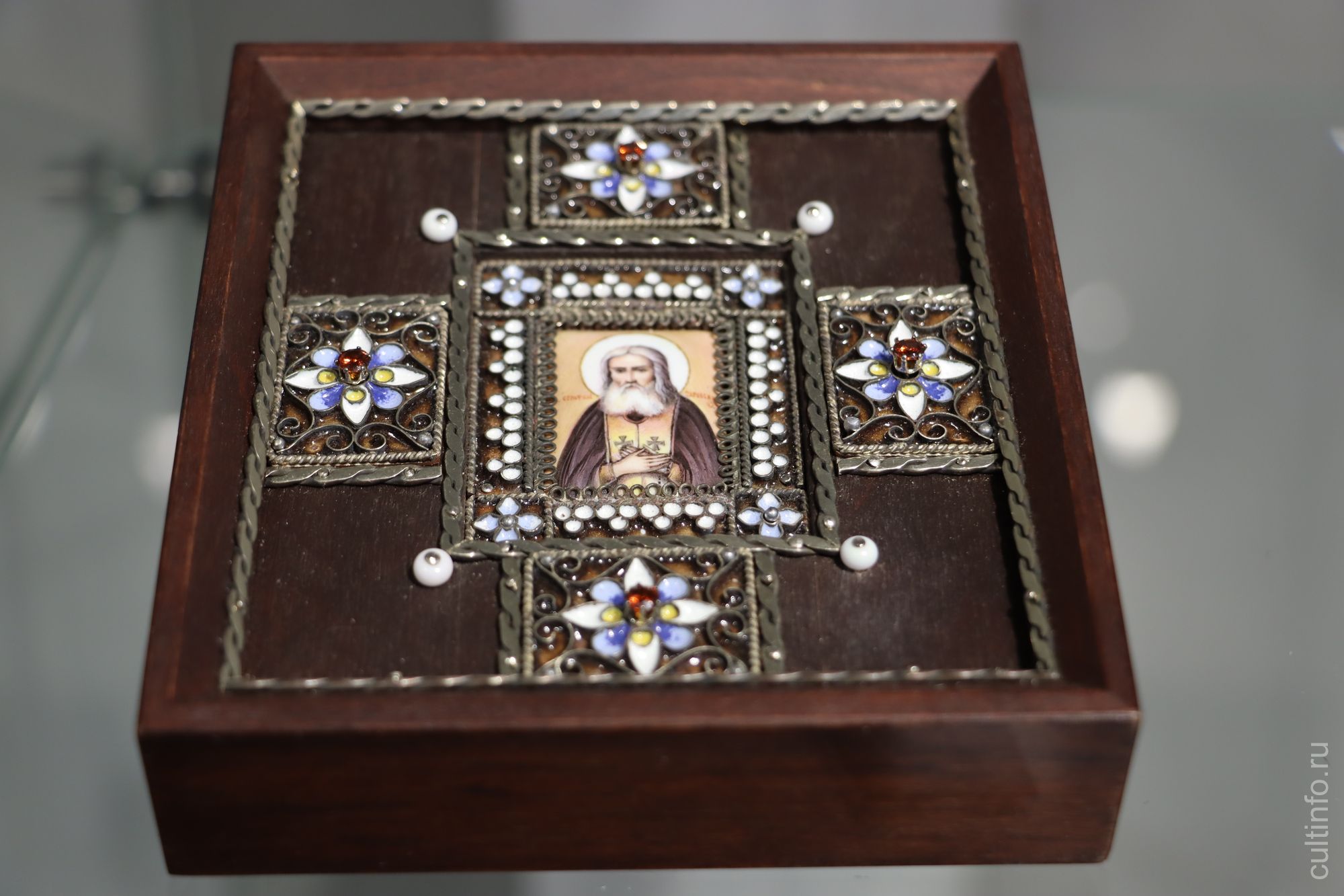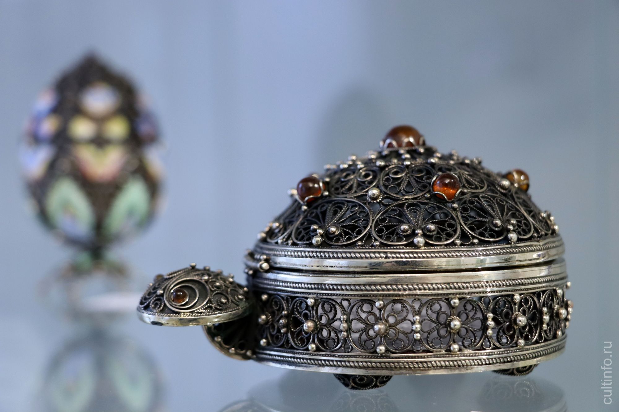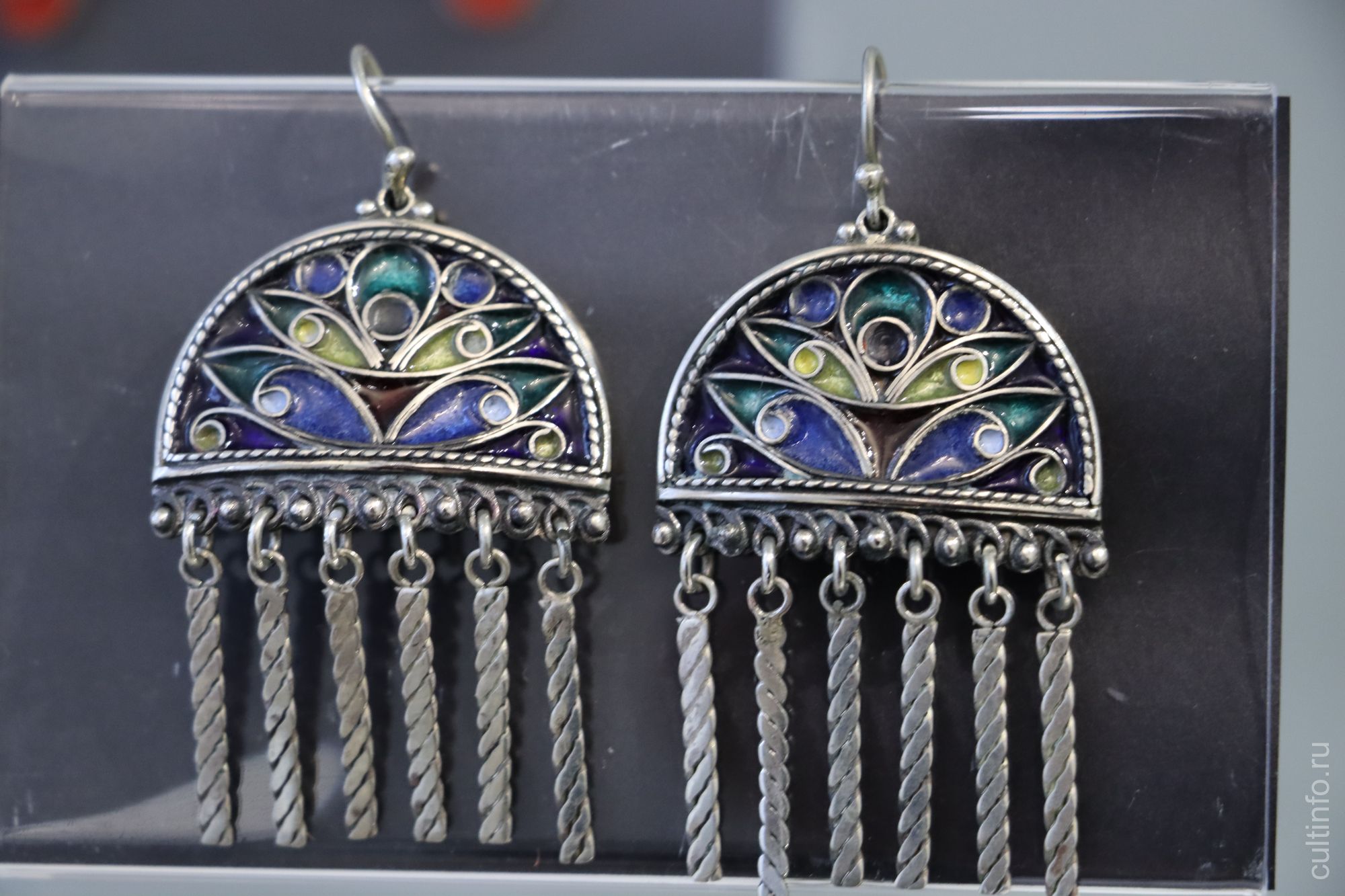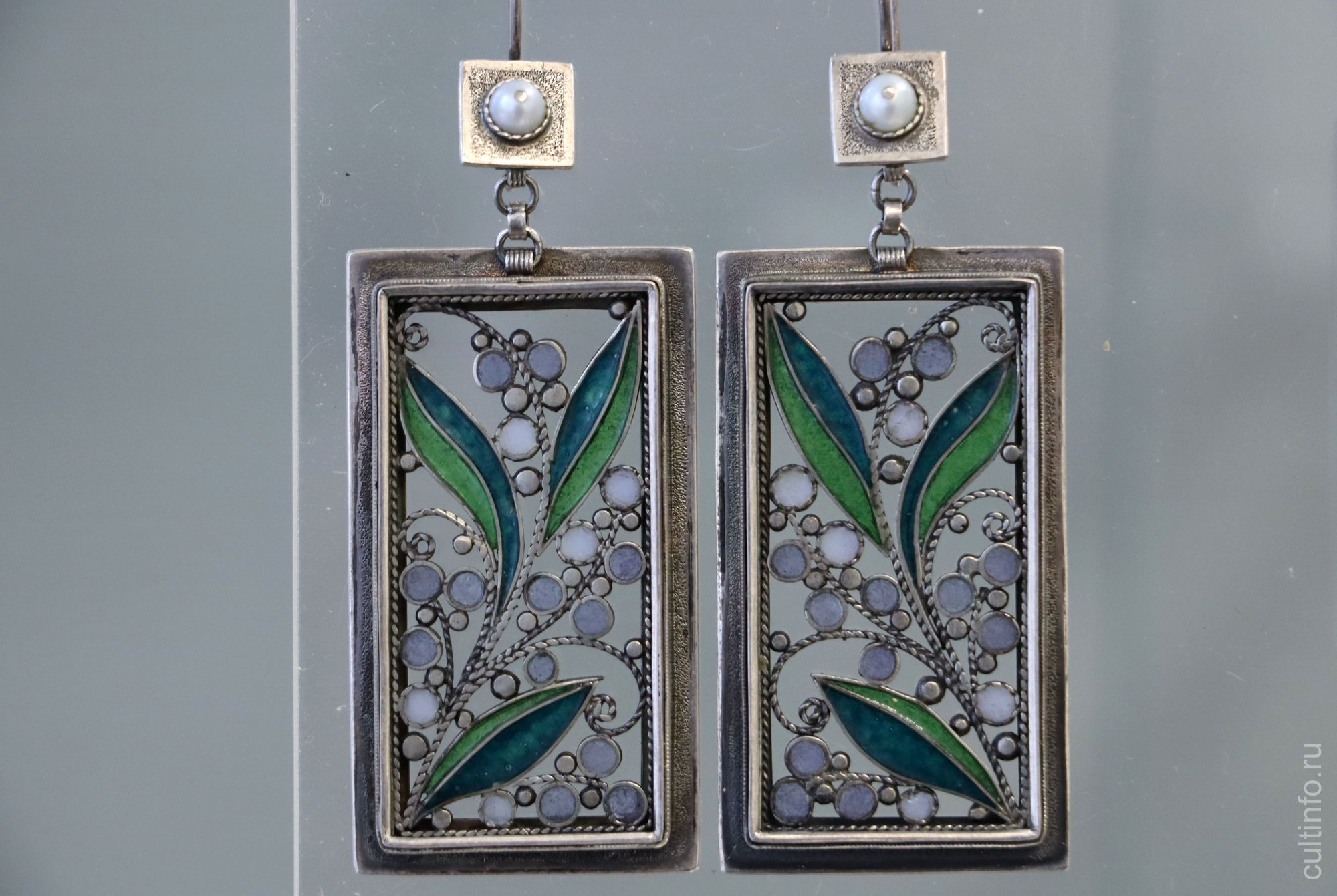 Колье, серьги, медальоны, шкатулки, декоративные тарелки и панно, изделия церковной тематики: лампадки, кресты и иконы святых покровителей – выполнены в различных техниках ювелирного искусства. Это скань, финифть и филигрань, перегородчатая эмаль и роспись по эмали.