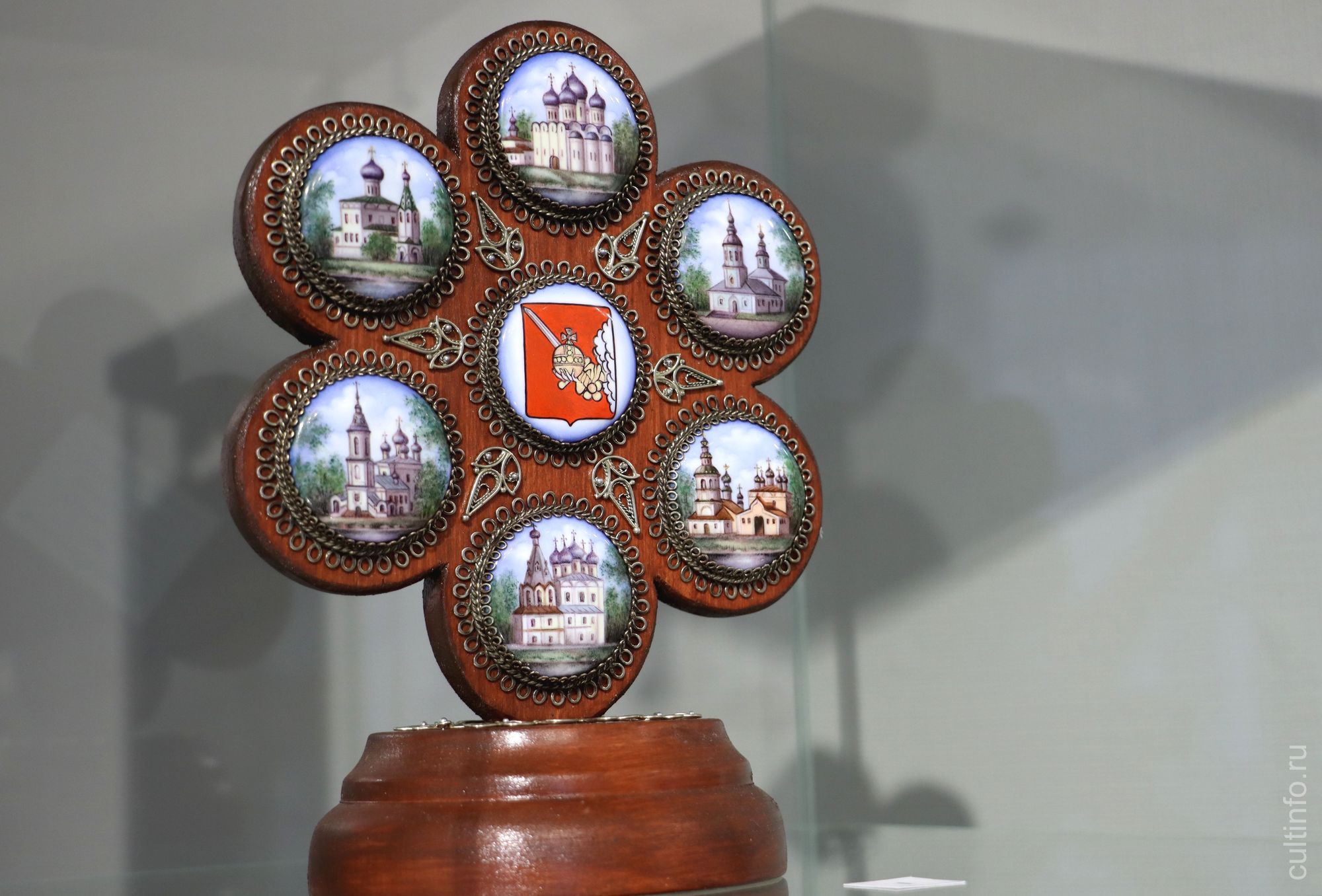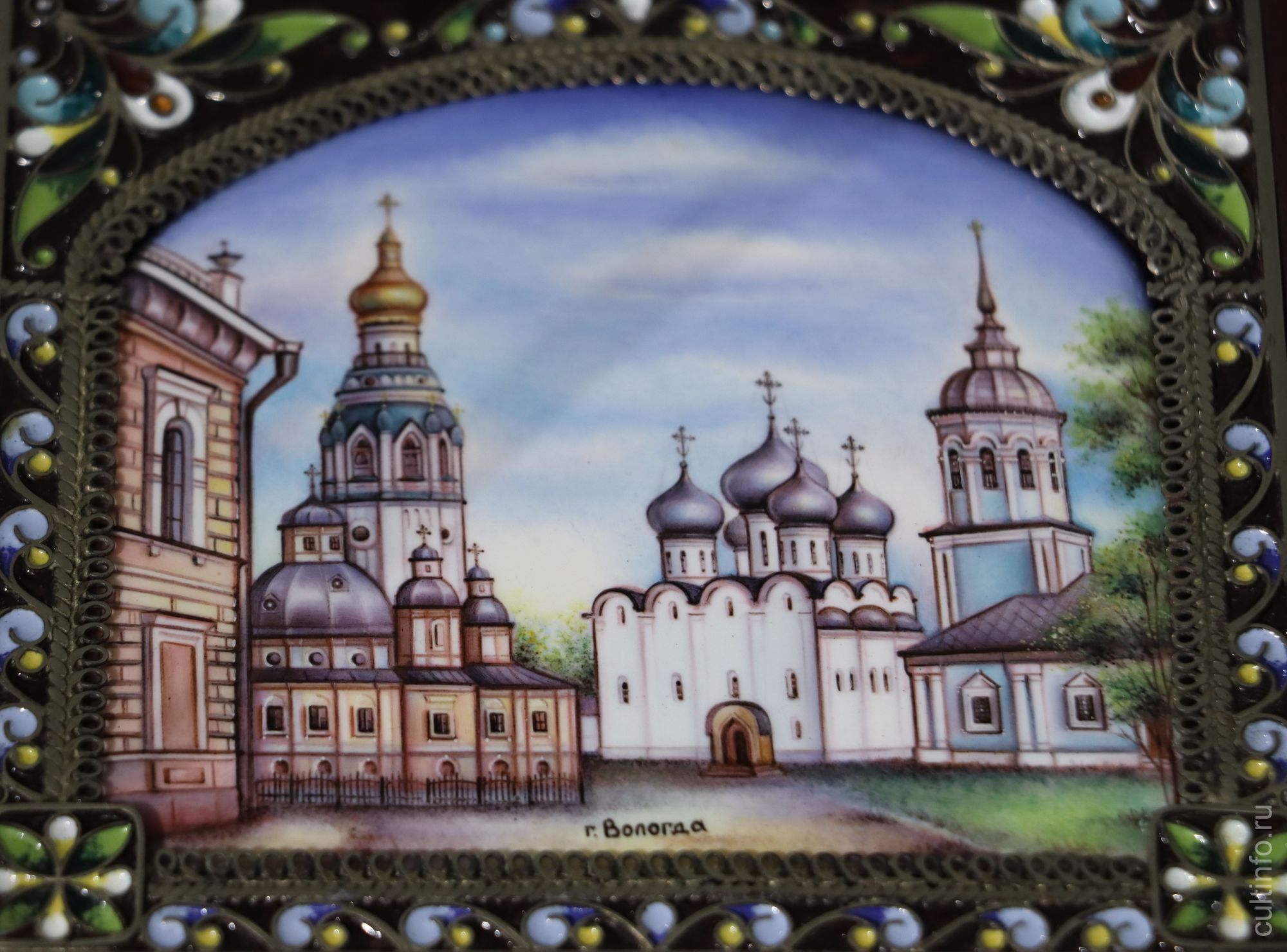Ирина Ганичева – представительница известной в Вологде династии ювелиров. Вместе с супругом она работала на Вологодском заводе опытных и художественных изделий, который открылся в 1970-е годы, чтобы возродить угасший промысел – усольскую эмаль. На выставке «Шедевры хрупкой красоты» представлены изделия, в создании которых участвовала Ирина Ганичева. На панно «Рождественский ангел» она нанесла изящную роспись по перегородчатой эмали. Современная эмаль представляет собой кремниевый сплав, содержащий окислы калия, натрия и другие компоненты. Окрашивается этот сплав в тот или иной цвет в зависимости от включения в него окисей различных металлов. Например, различные оттенки красного цвета образуют определенные соединения золота, окиси железа и хрома. В желтый цвет эмаль окрашивается благодаря введению в нее трехокиси сурьмы, соединений серебра, в синий и голубой – окиси кобальта, в черный – окиси иридия и марганца.