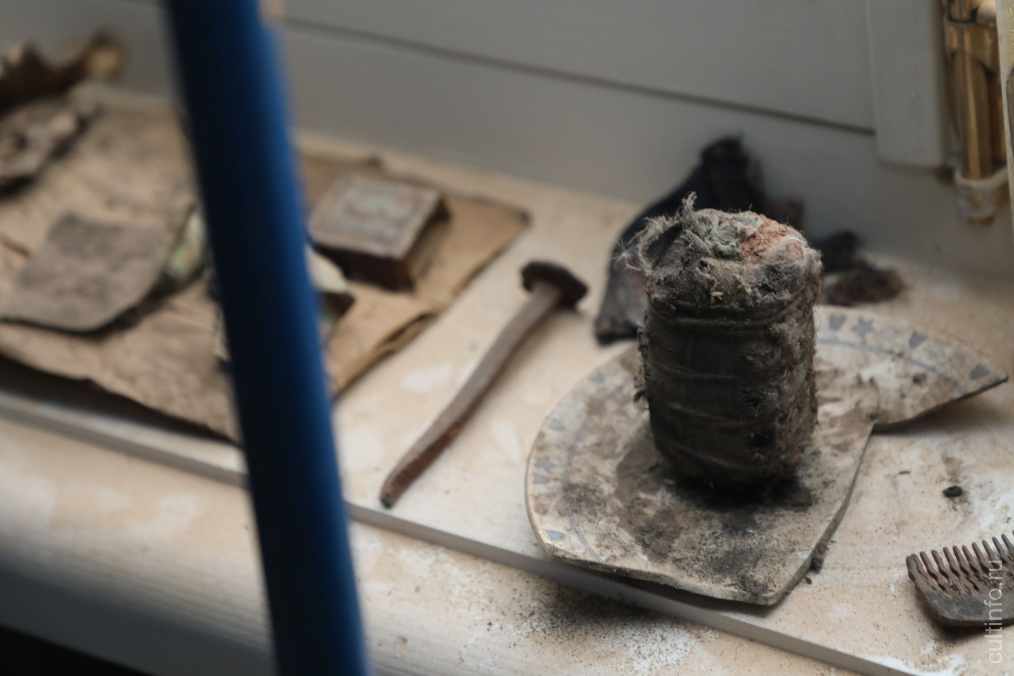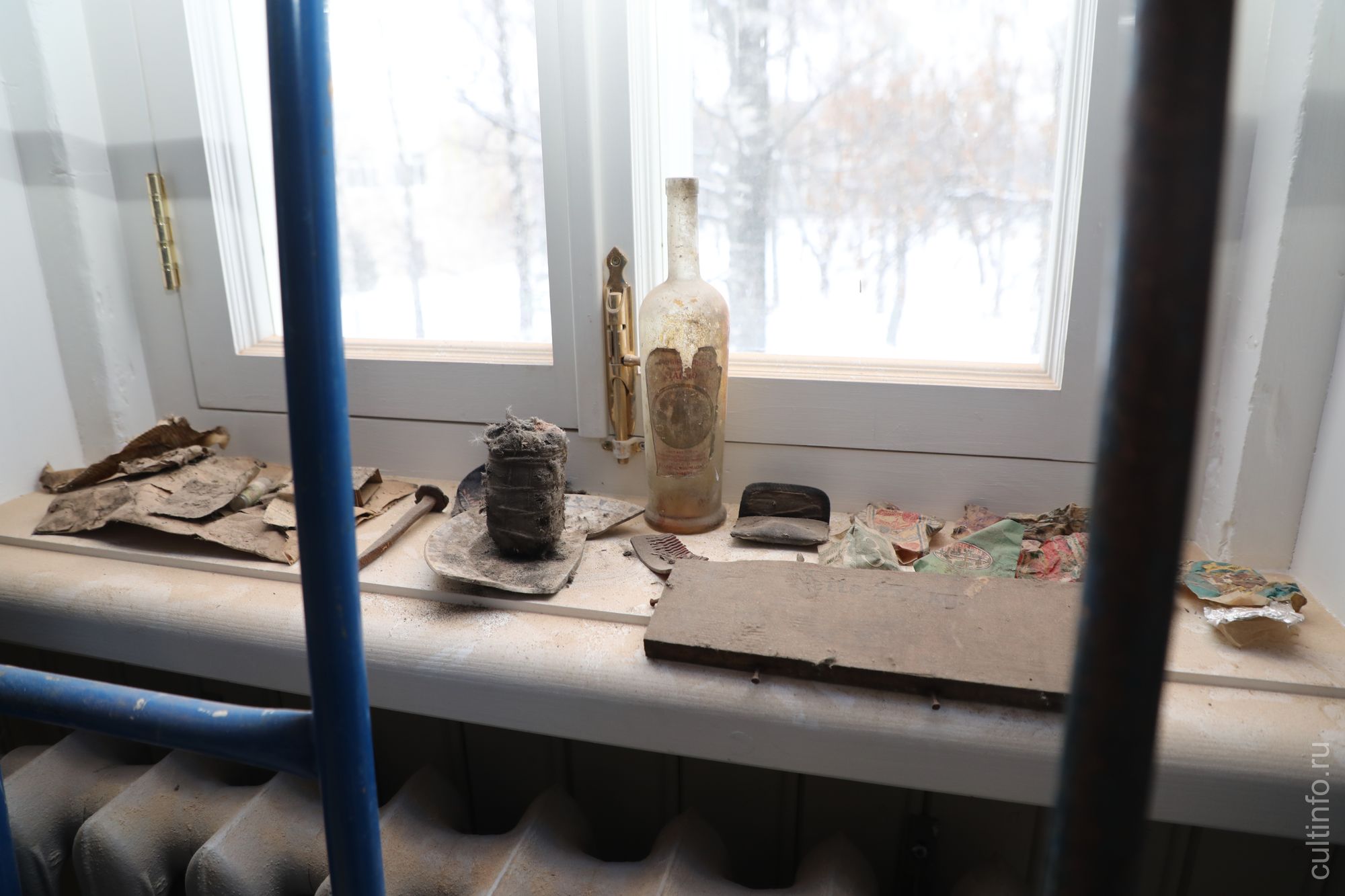 Когда реставраторы перебирали полы на втором этаже, то обнаружили новые находки: предположительно, упаковку пороха, кованый гвоздь, гребешок, фантики от старых конфет, рубли и другие любопытные вещи. Все они потом станут частью экспозиции, посвященной истории здания.