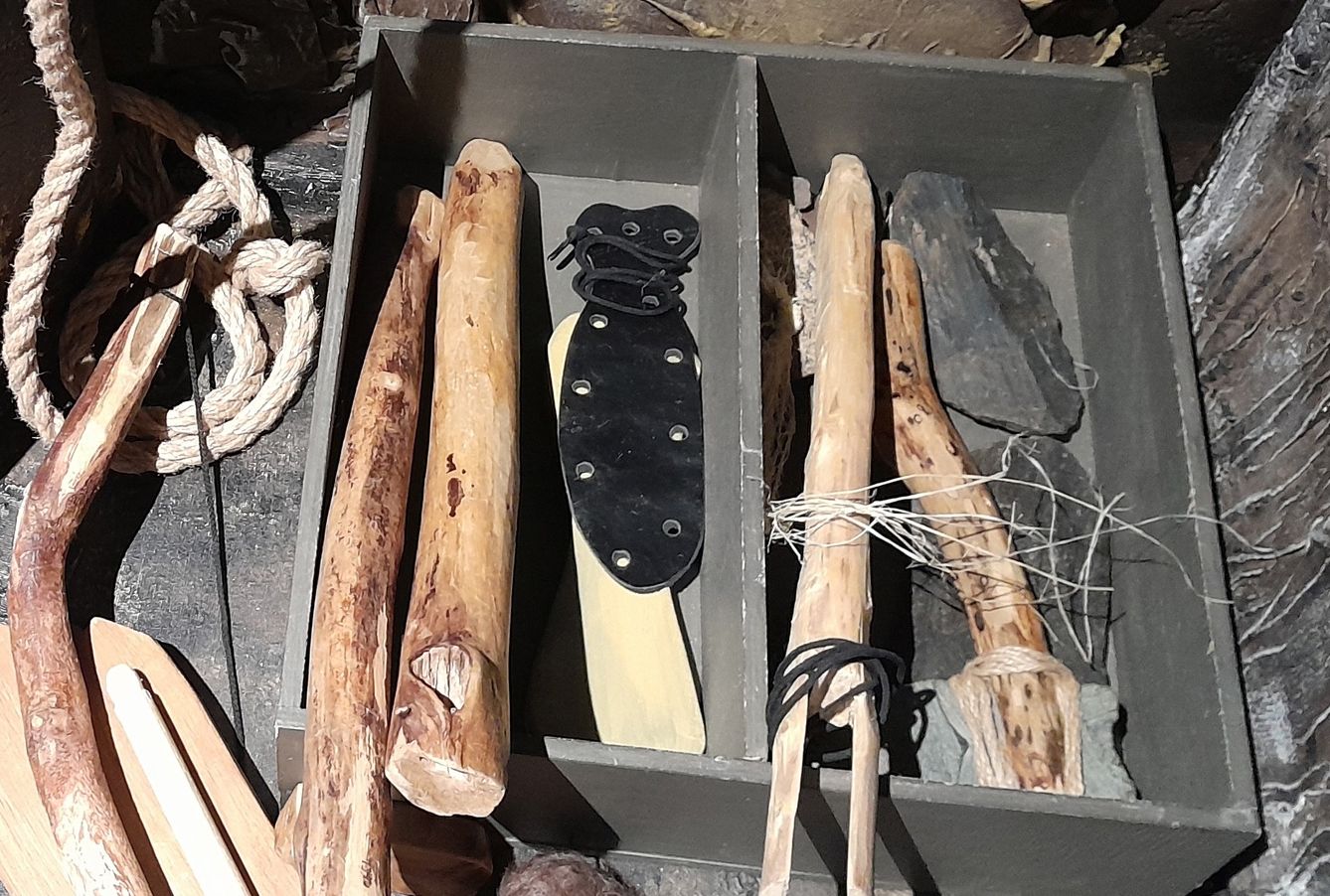 Экспозиция адресована детям. Чтобы ребятам было интересней, ее сделали интерактивной. Дети смогут добывать огонь, стать первобытными охотниками и строителями, художниками, гончарами и даже музыкантами. Для этого в пространстве есть интерактивные предметы: дощечки, палки и веревки, из которых получаются приспособление по добыванию огня, материалы для создания каменного топора. Есть и глина для лепки посуды. Здесь же юные посетители увидят маску и бубен шамана, кремневые наконечники копий и стрел. Экспозиция является частью проекта «Мировое искусство – детям: Древний мир».