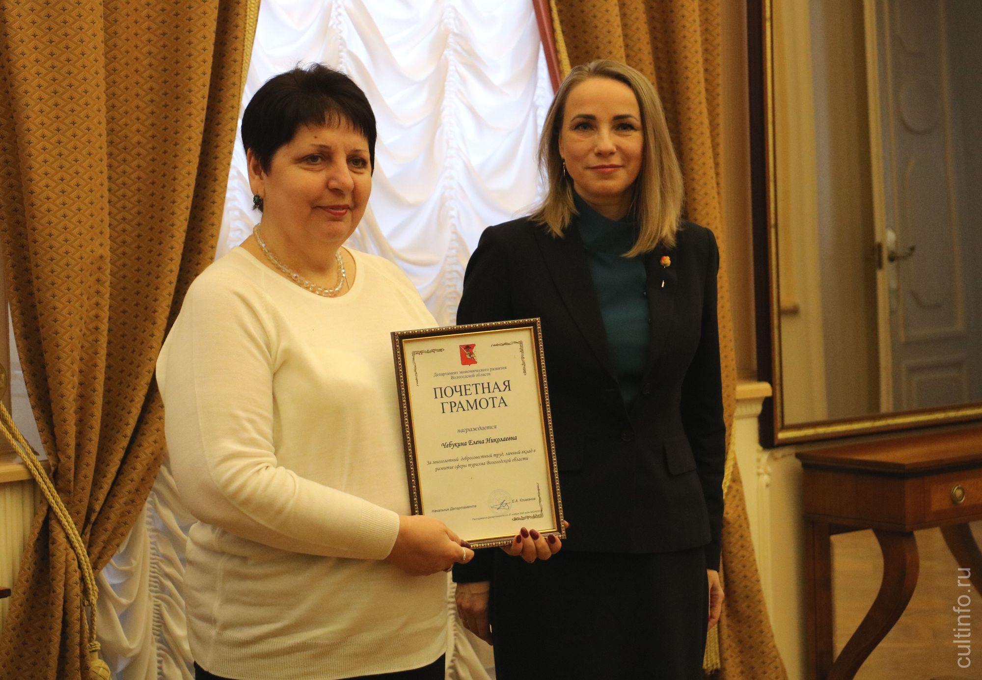 Экскурсоводов и гидов области сегодня в Иосифовском корпусе Вологодского кремля поздравили с профессиональным праздником начальник Управления государственной политики в сфере культуры, искусства и организации архивного дела Департамента культуры Дмитрий Шевцов, начальник Управления туризма, заместитель начальника Департамента экономического развития Екатерина Щеголева и директор Вологодского музея-заповедника Юлия Евсеева. Лучшим экскурсоводам вручили почетные грамоты и благодарности от Департамента экономического развития области.